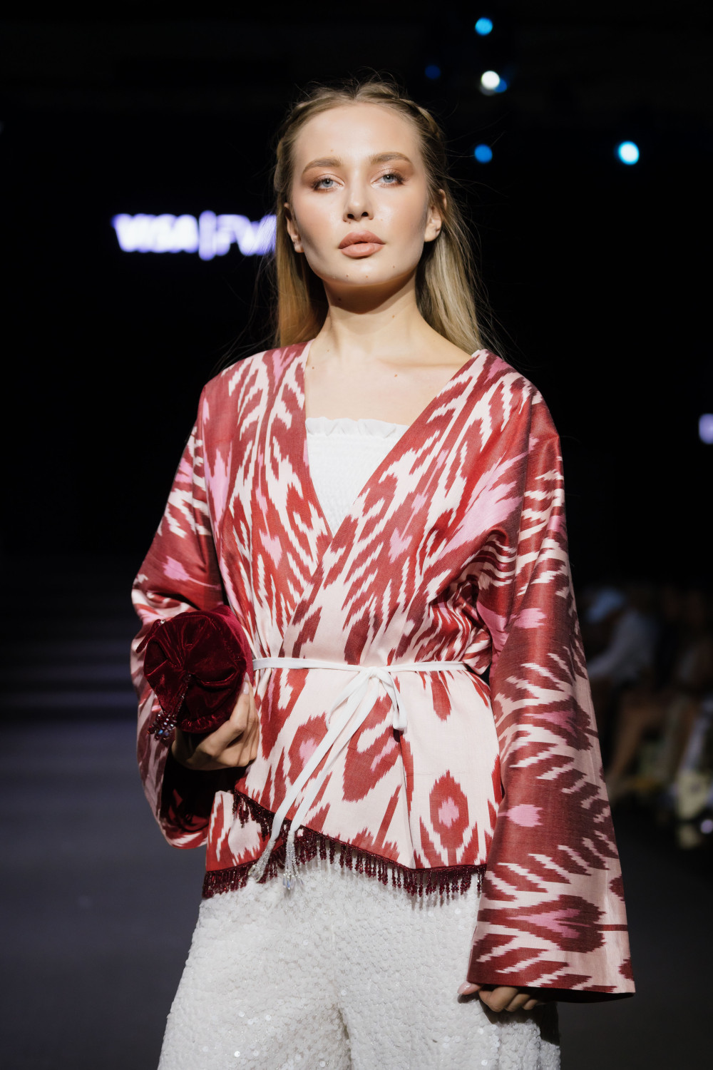 С первыми шагами моделей на подиуме воздух наполнился тонкими, почти неуловимыми звуками Востока — как дыхание предков, как шелест шелка в вечернем бризе. Так открылся юбилейный сезон VFW Tashkent — показом бренда Dilnoz, сотканного из памяти, искусного мастерства и красоты. Создательница коллекции — Дильноз Эркинова, выпускница парижской Académie Internationale de Coupe de Paris, — словно вплела золотыми нитями восточную мечту в ткань европейской выверенности. Каждый образ — как отблеск древних узбекских орнаментов, переосмысленных для женщины сегодняшнего дня: сильной, чуткой, цельной.
