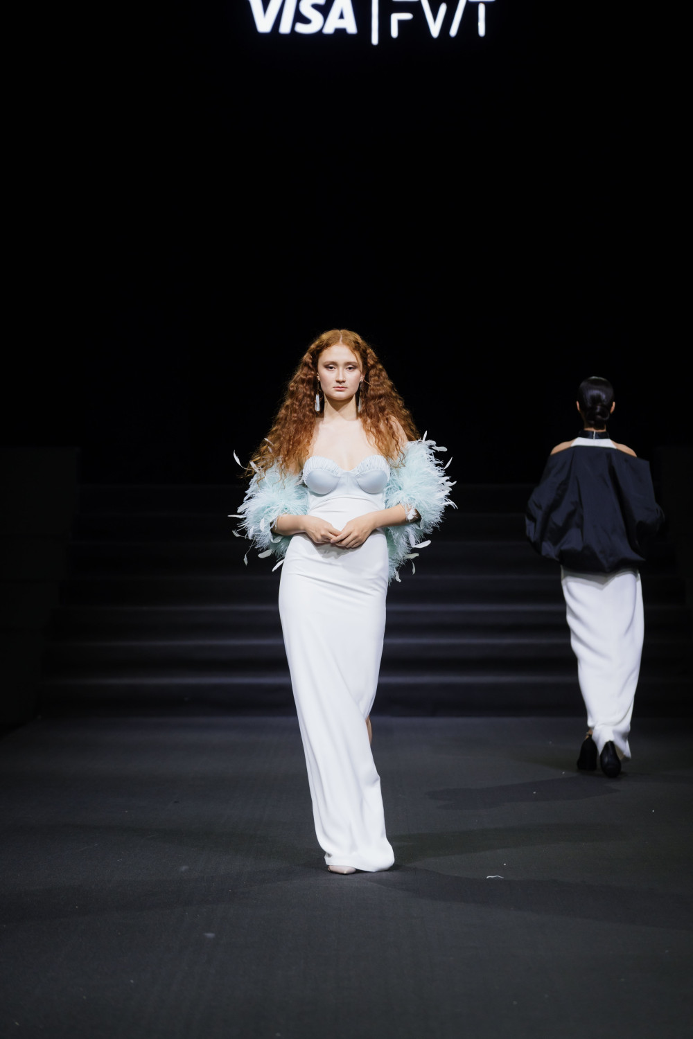 На подиуме VFWT прозвучал не просто модный аккорд — прозвучал манифест поколения, стоящего на пороге нового мира, где величие научного прогресса соседствует с экзистенциальной тревогой. Финалистки конкурса Next Designer Awards by Visa, Алуа и Тахмина, представили коллекцию «Атомное клеймо» — пронзительное высказывание о времени, в котором каждый научный прорыв оставляет на человечестве ощутимый след. Дизайнеры буквально и метафорически «разрезали» ткань будущего, чтобы показать: за каждым изгибом прогресса, за каждым технологическим скачком стоит живой, чувствующий человек.