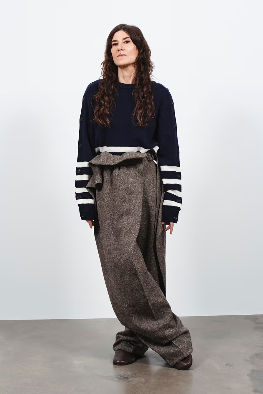 Стоит отметить, этот сезон — важный рубеж для бренда JW Anderson. Новая глава начинается с обновленного логотипа — более лаконичного, с новым пространством магазина, новым визуальным кодом. Но за переменами — все та же интуиция Джонатана: «Я хочу быть окружен вещами, которые люблю». Мода — это способ показать свой вкус. Или, если быть честными, вкус самого дизайнера. Его откровенно коллекционерский, слегка странноватый, но невероятно притягательный вкус.