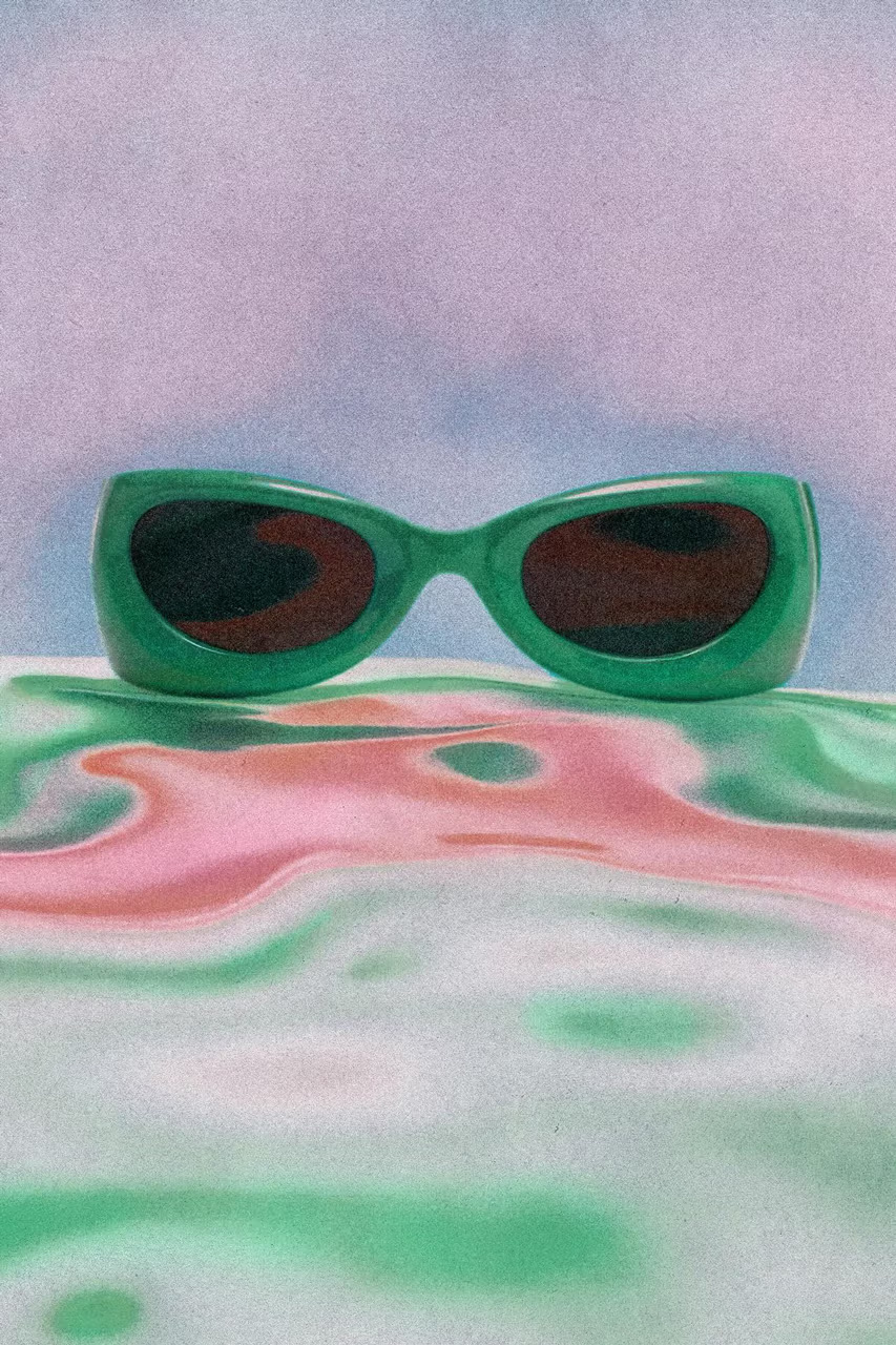 В коллекцию вошли худи, майки, бини и аксессуары— все в насыщенных оттенках с игривыми названиями вроде Fizz, Super Blue, Gum и Jelly. Бини цвета жевательной резинки? Есть. Лаконичные шлепанцы и массивные мюли в духе 2000-х? Конечно! Но главное — это очки Upside Down с гипертрофированными, почти карикатурными линзами. Они выглядят по-настоящему футуристично и явно созданы для того, чтобы вскоре появиться на фестивалях и в TikTok.