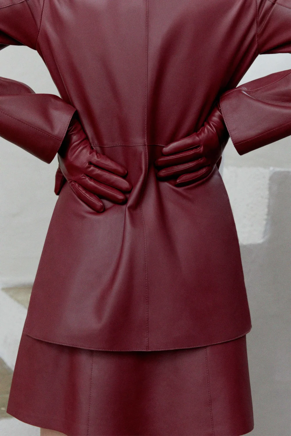 Винный кожаный костюм в этой системе координат — не броня, а оберег. Сила в нем — не внешняя, а внутренняя. Не для того, чтобы впечатлять, а для того, чтобы быть. Быть уверенной. Быть красивой не вопреки, а по умолчанию. Следом — вязаный комплект цвета молочного зефира. Женщина, которая его надевает, не выбирает между стилем и комфортом. Она больше ничего не выбирает — ведь уже выбрала себя.