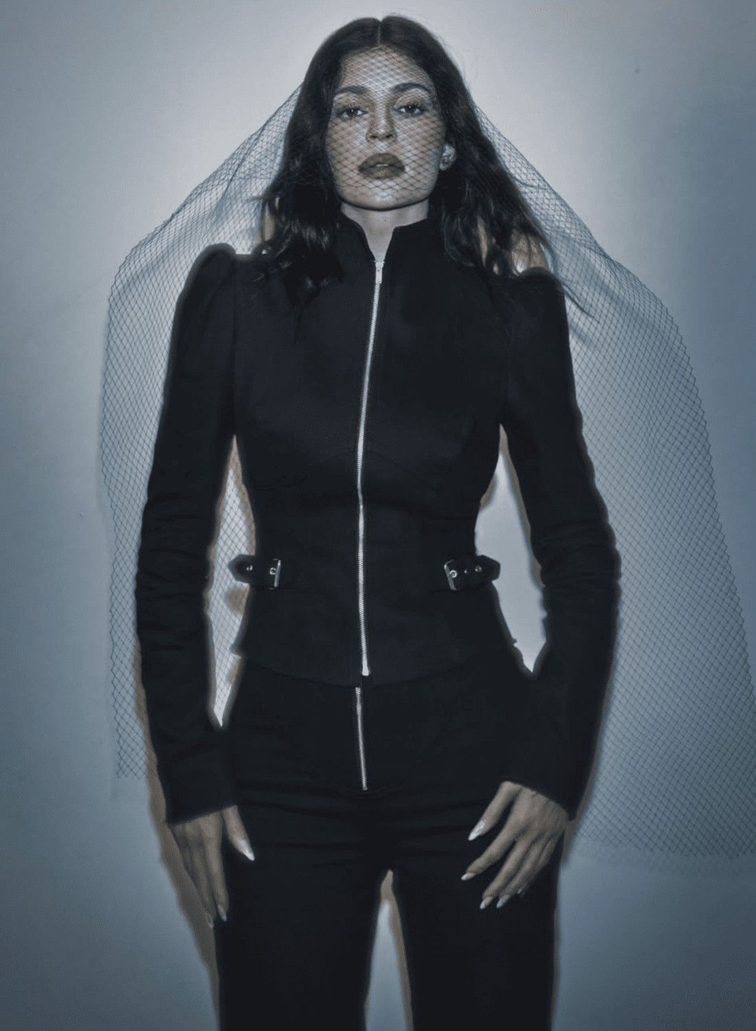 Эстетика коллекции звучит эхом готики, панка и высокой театральности. Ткани говорят не менее громко, чем силуэты: прозрачные сетки создают ощущение недосказанности, вуали закрывают лицо, но не скрывают внутреннюю силу, а лакированная кожа добавляет образам визуальной и эмоциональной драмы.