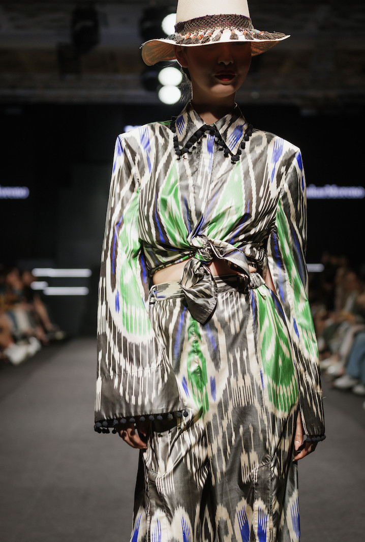 С самого первого выхода на подиум стало понятно: Azukar Moreno приглашает не просто смотреть — чувствовать. Это не показ, а путь. Не коллекция, а хореография культур. Тонкий, как шелк. Направленный, как мысль. Мост — между Востоком и Западом, между древним ремеслом Маргилана и скоростью современности.