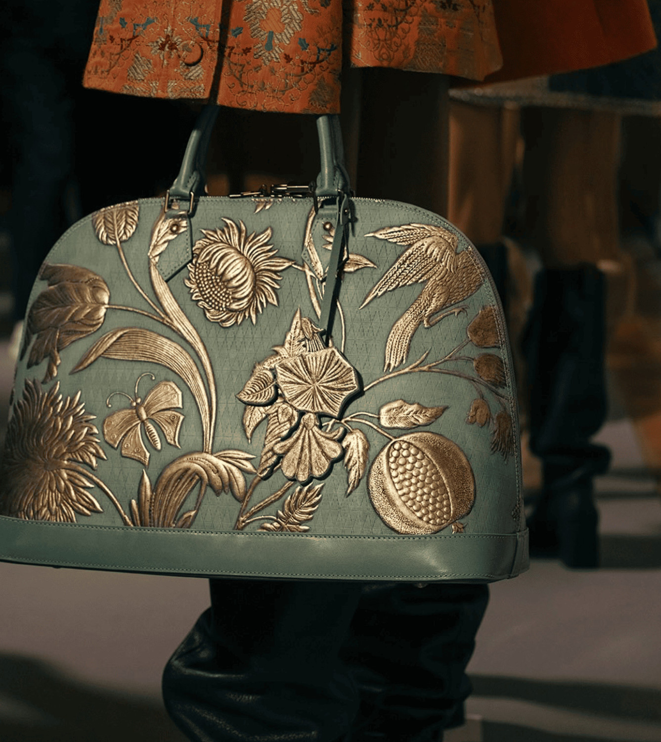Но больше всего нашу редакцию впечатлили детали. Сапоги, выложенные зеркальной мозаикой. Сумки Alma, похожие на старинные манускрипты. И, конечно, ремни — безоговорочный аксессуар сезона: плетеные, клетчатые, в виде колец — они подчеркивали талию и добавляли в каждый образ щепотку панка.