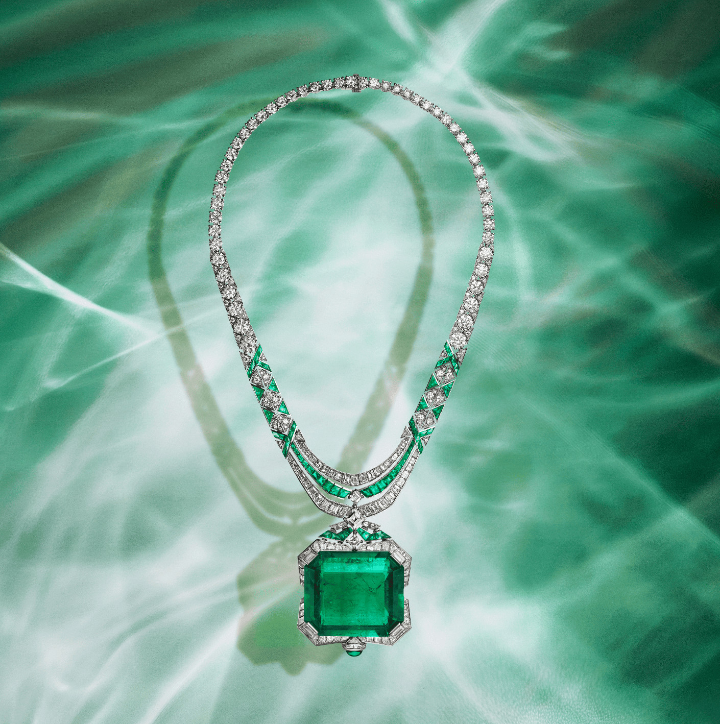 Если Cosmic Vault — это ночь, то Celestial Mosaic — рассвет над Востоком. Колье, вдохновлённое древом жизни из иерихонской мозаики XVIII века, — настоящая поэма культур Средиземноморья и величия Великих Моголов. Изумруды, оникс и турмалины переплетаются здесь в изысканной гармонии, а в самом центре сверкает редчайшая шпинель из Таджикистана весом 131,21 карата — уникальный камень, ставший первым в мире такого исключительного качества и масштаба.