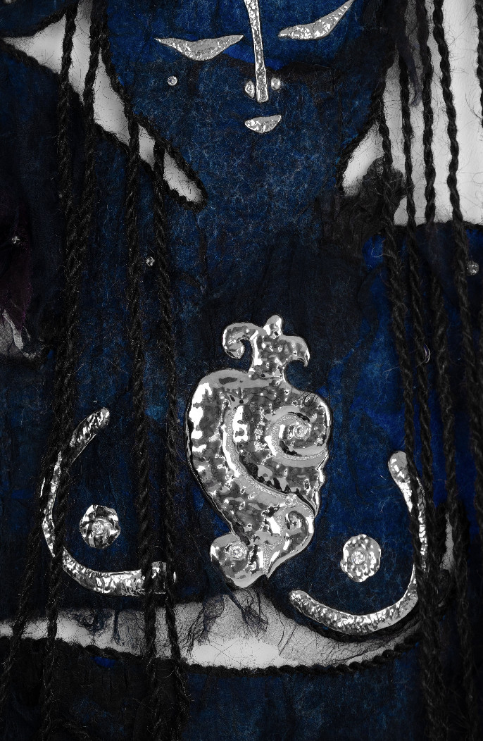 Работы Алтынай Осмо развивают тему иначе — в более тактильной, приземленной, но не менее сакральной плоскости. Ее скульптуры из войлока, шерсти и традиционных материалов будто хранят тепло рук, передающих знания от поколения к поколению. Через обряды, матриархальные образы и духовные практики Осмо возвращает зрителя к женским истокам.