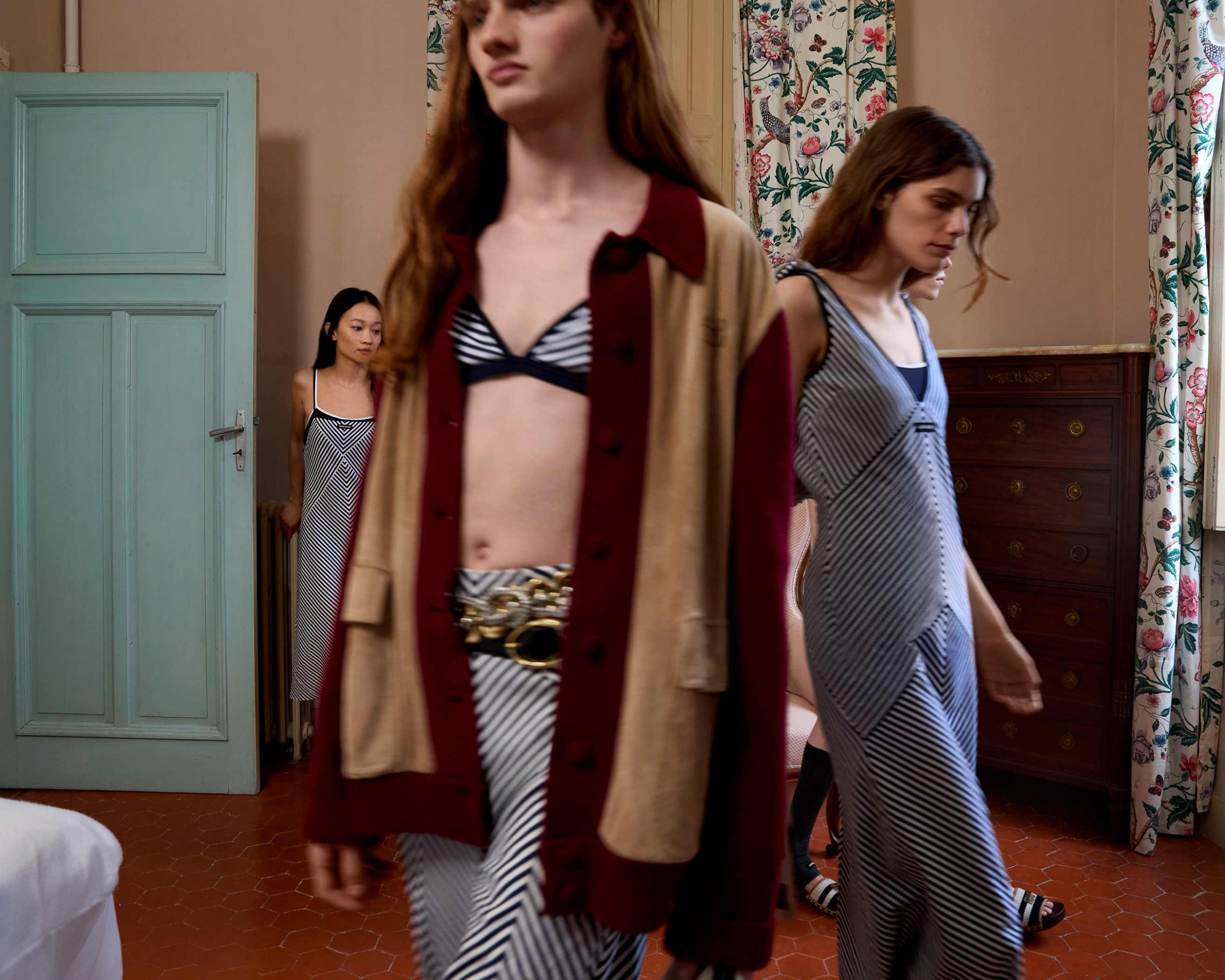 Но сама коллекция — лишь часть истории. Кэтрин Мартин представила и короткометражный фильм Grande Envie, который дополняет и расширяет смысловую палитру проекта. В центре сюжета — вдовец-граф, которого мастерски воплотил Уиллем Дефо, и его таинственные посетительницы — три загадочные девушки и призрак ушедшей графини. Действие разворачивается в роскошном французском шато, где прошлое и настоящее переплетаются, время становится пластичным, а желания — вечными.