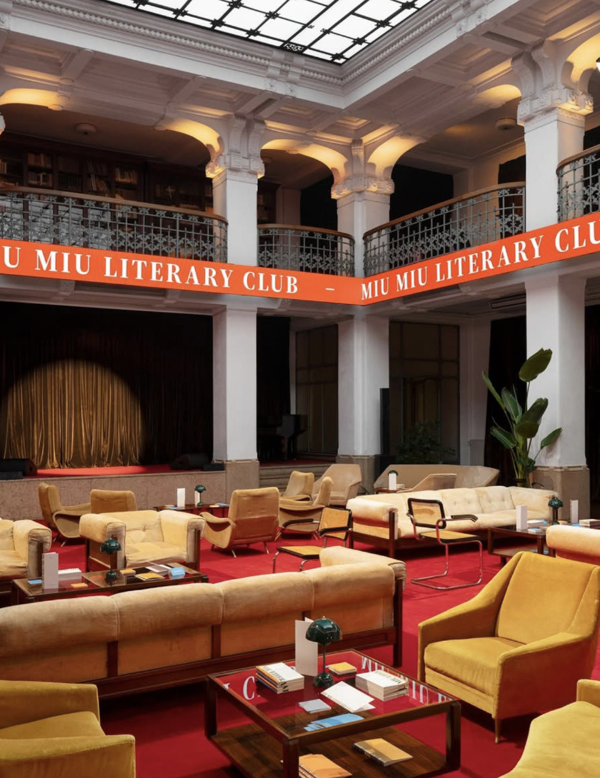 На фоне дизайнерских вечеринок Miu Miu устроил литературный клуб. Меньше о моде, больше — о том, как женщине разрешают чувствовать, взрослеть, желать. И да, все это на фоне книжных полок и живой музыки, в уютной компании.