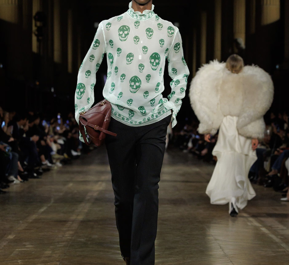 Он снова в ходу — но теперь не просто как аксессуар. Его носят на талии, как ремень. Завязывают на запястье или на сумку, как символ принадлежности. В эпоху, где новые интерпретации сменяются коллаборациями, а каждое переиздание звучит как «переосмысление», McQueen платок остался прежним. Он по-прежнему не старается понравиться. Просто ждет тех, кто поймет.