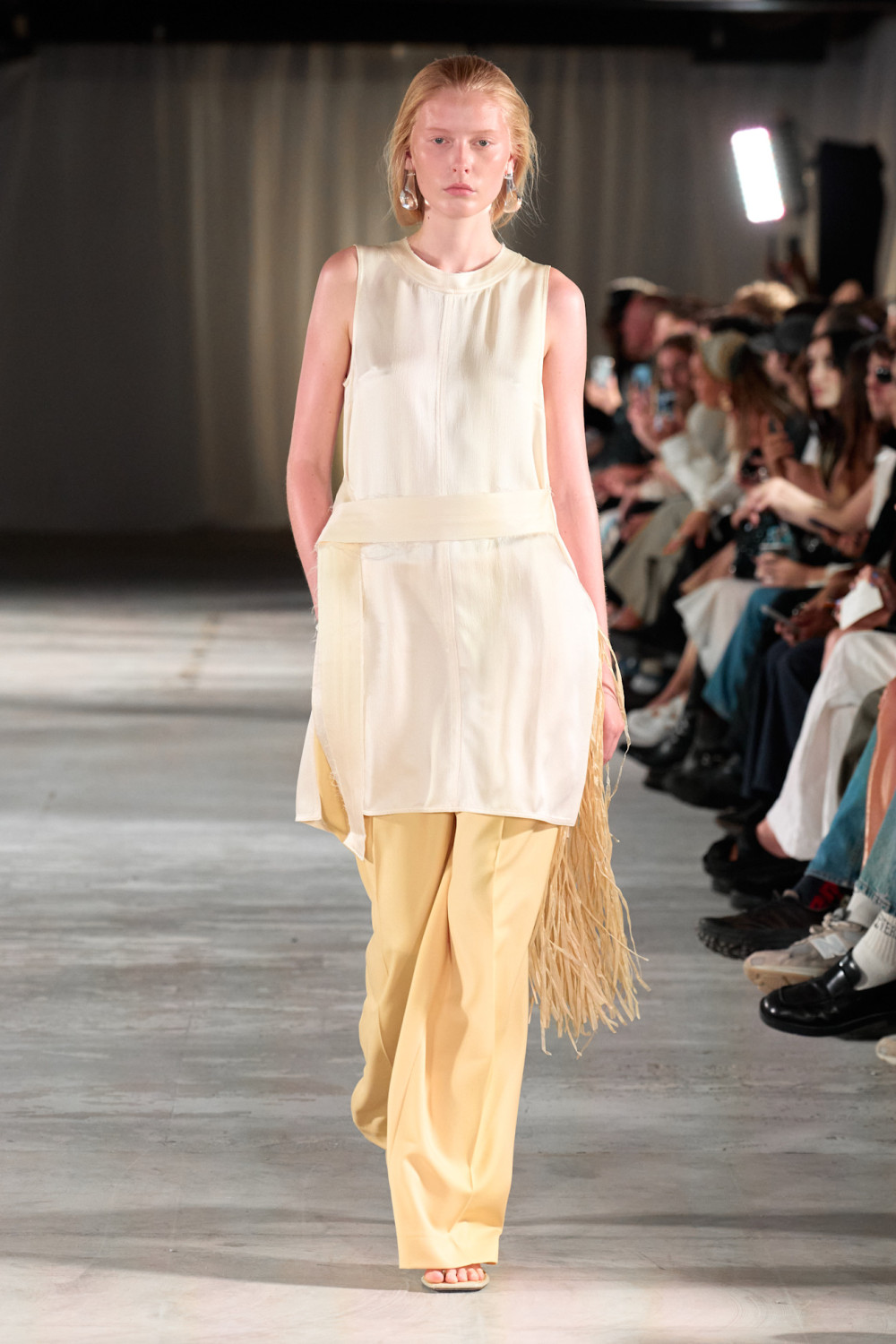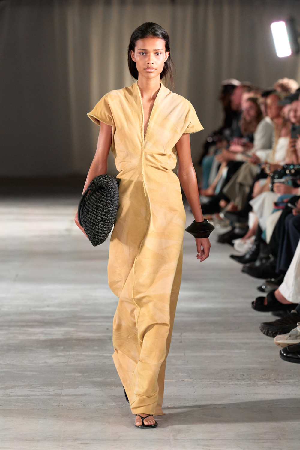 Коллекция Shifting Light — движение от напряжения к тишине, от демонстративности к присутствию «здесь и сейчас». Вдохновением для нее послужили длинные летние дни, когда свет медленно скользит по фасадам, а воздух наполняется золотой пылью. Эта атмосфера нашла отражение и в палитре образов — природной, мягкой, словно выцветшей от солнца. На подиуме перекликались оттенки охры и песка, подчеркнутые изящными вкраплениями черного.