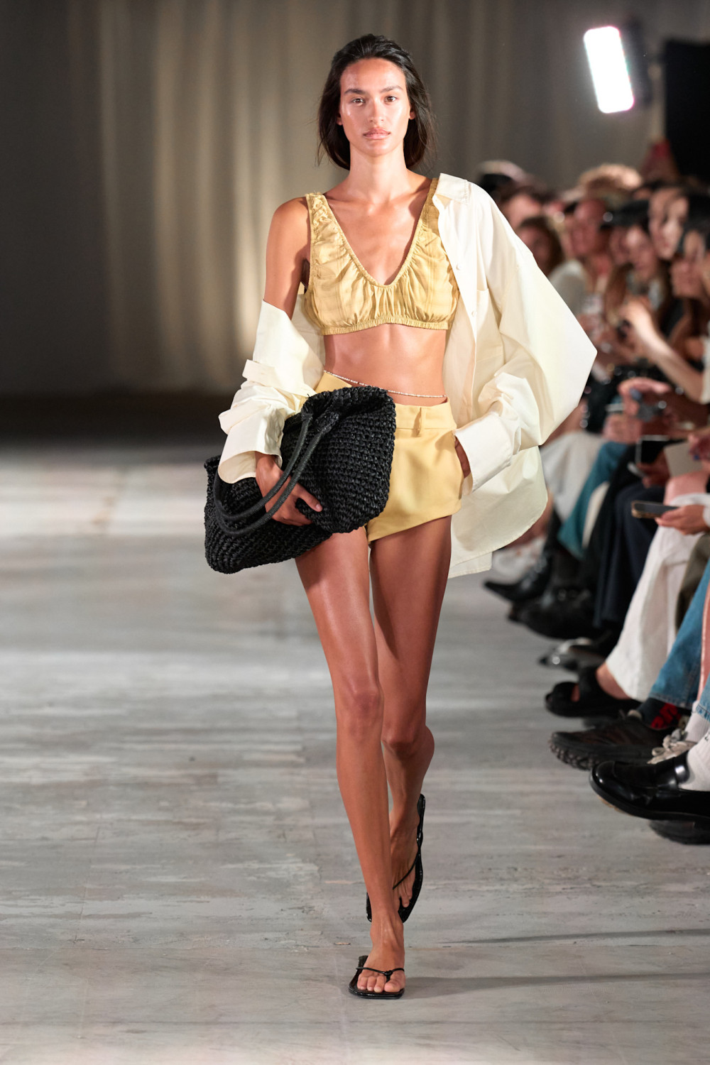 Полупрозрачные блузы с удлиненными рукавами и глубоким вырезом, миниатюрный горошек, рассыпавшийся на легких платьях и топах, бельевые шорты в пастельных оттенках — все это создавали по-настоящему кинематографичную картинку. И все же особое место в сердце нашей редакции заняли джинсы — идеальный баланс между клешами и bootcut. Универсальная форма, уместная в любой эпохе.