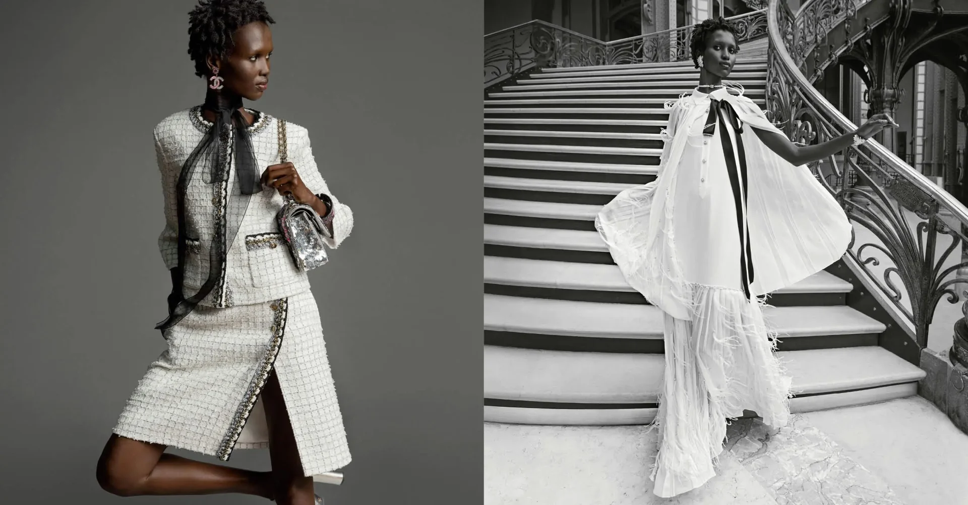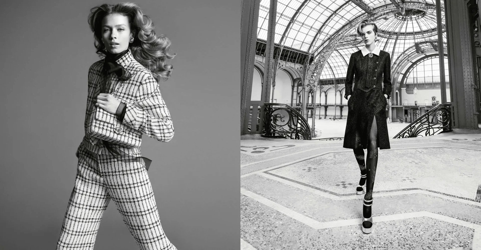 Кампания продолжает тему весенне-летней коллекции, соединяя в себе дух классики, современный ритм и архитектурное вдохновение. В центре внимания — твид, материал, ставший синонимом Chanel. В этом сезоне он обретает новое звучание, вдохновленное архитектурными линиями Гран-Пале. Четкие геометрические узоры костюмов перекликаются с сетчатой структурой стеклянного свода, создавая эффект утонченной симметрии. Дополняет образы культовая сумка 11.12.