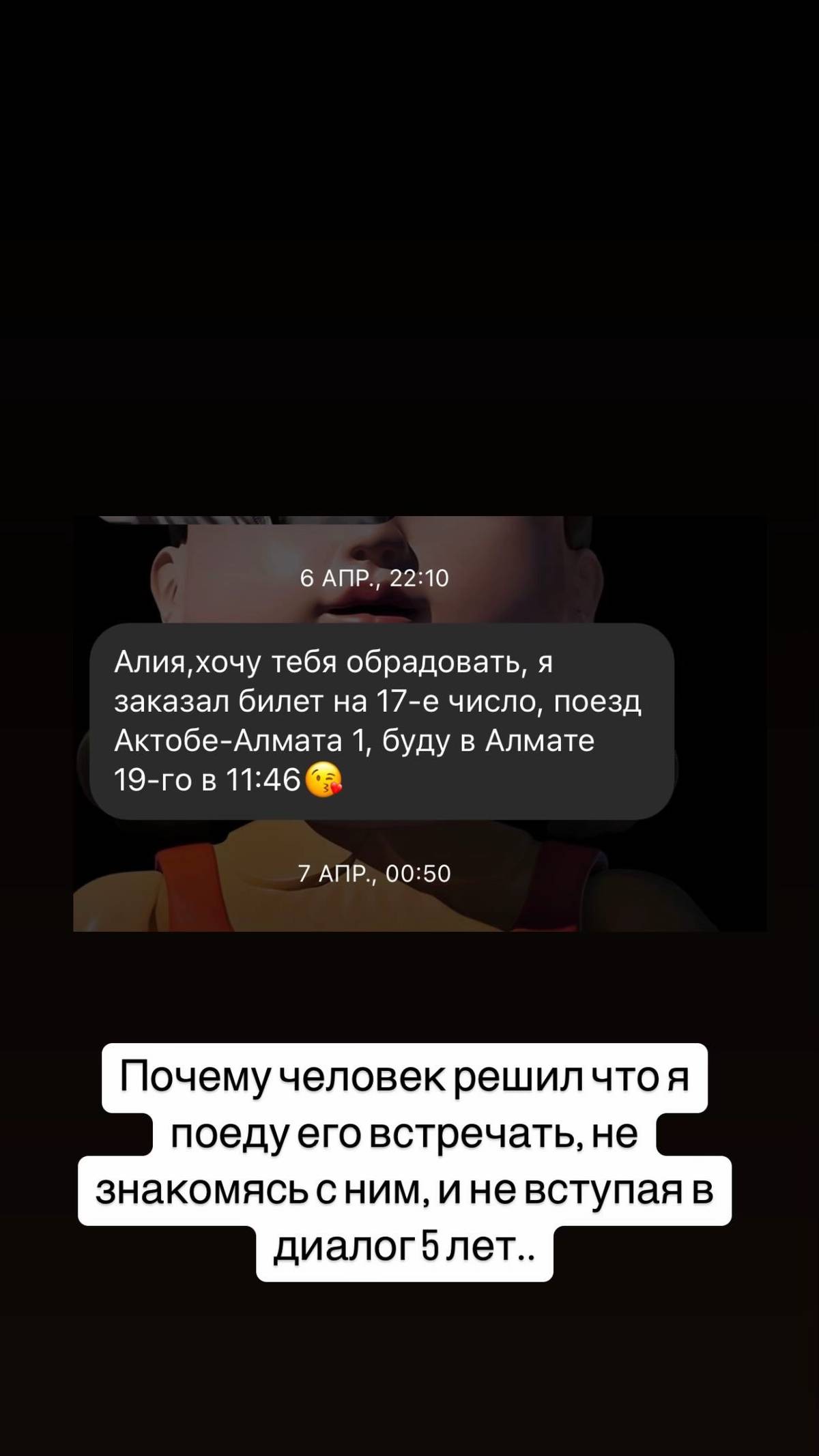 Күн сайын блогер жауап бермесе де келетінін айтып, күтіп алуын сұраған. Жағдай одан әрі ушығып, белгісіз адам Әлияны «жақын достар» тізіміне қосып, вокзалда түсірілген суретті жариялаған. Онда кешке дейін оны күткенін жазған.