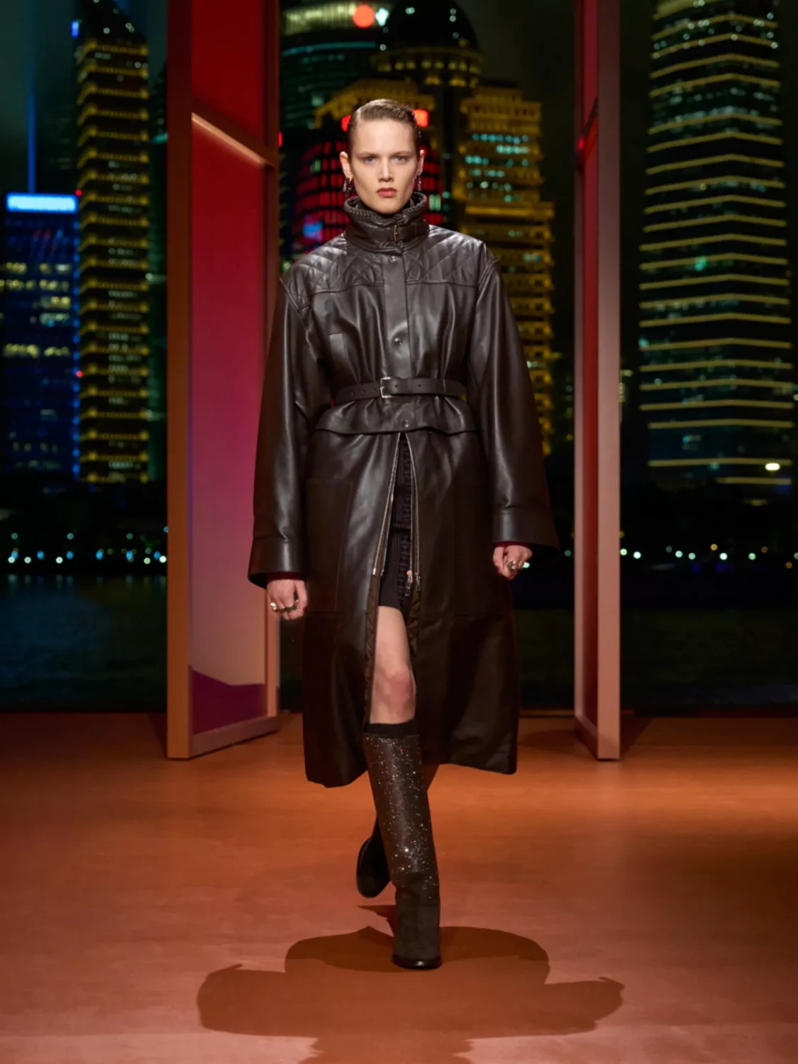 В истории Hermès, начавшейся в 1837 году, показы за пределами Франции — редкость, тщательно выверенное исключение из правила. В прошлом году Дом сделал ставку на Нью-Йорк, а теперь перенес подиум в Шанхай — город, где стеклянные небоскребы отражаются в воде древней реки, и неон встречается с философией тысячелетий. Именно здесь, на набережной Бунд, была представлена вторая глава осенне-зимней коллекции. Глава, в которой все — о движении.