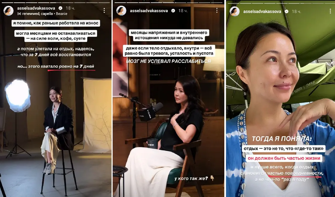 Әсел Сәдуақасова шамадан тыс жұмыс істеп, соның салдарынан ішкі қажу мен күйзеліске ұшырағанын айтып берді.