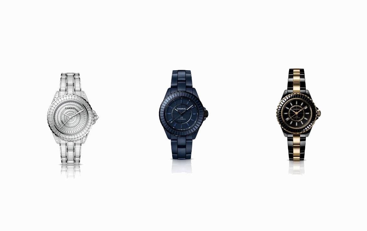 Знаменитые часы Chanel J12 перевоплотились в небожителей, инкрустированных камнями в бриллиантовой и багетной огранках. Изделие J12 RIVER 38 MM BAGUETTE-CUT DIAMONDS декорировано 630 алмазами, на установку которых у мастеров Chanel Manufacture ушло 148 часов работы. Безупречно выверенные грани камней часов J12 RIVER 33 ММ (а всего их 1661) отражают свет и могут даже затмить солнце в самое яркое время суток.