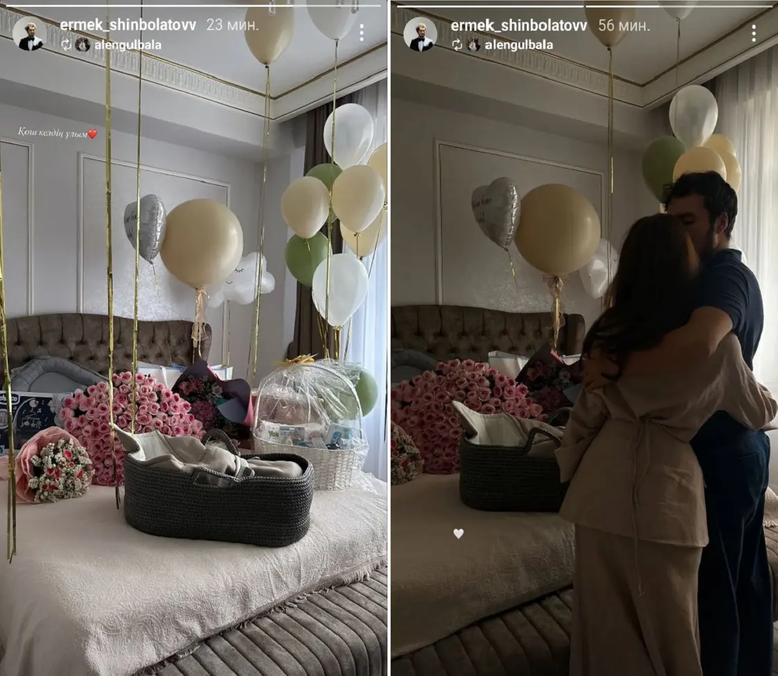 Ермек әлеуметтік желідегі әріптестерімен және жанкүйерлерімен қуанышты жаңалықпен бөлісуге асықты. Ол Instagram stories-те жылы кадрлар жариялады: алғашқы фотода – төсек үстіндегі нәрестені, гүл шоқтары мен сыйлықтарды көруге болады. Бөлме түрлі-түсті шарлармен безендірілген.
