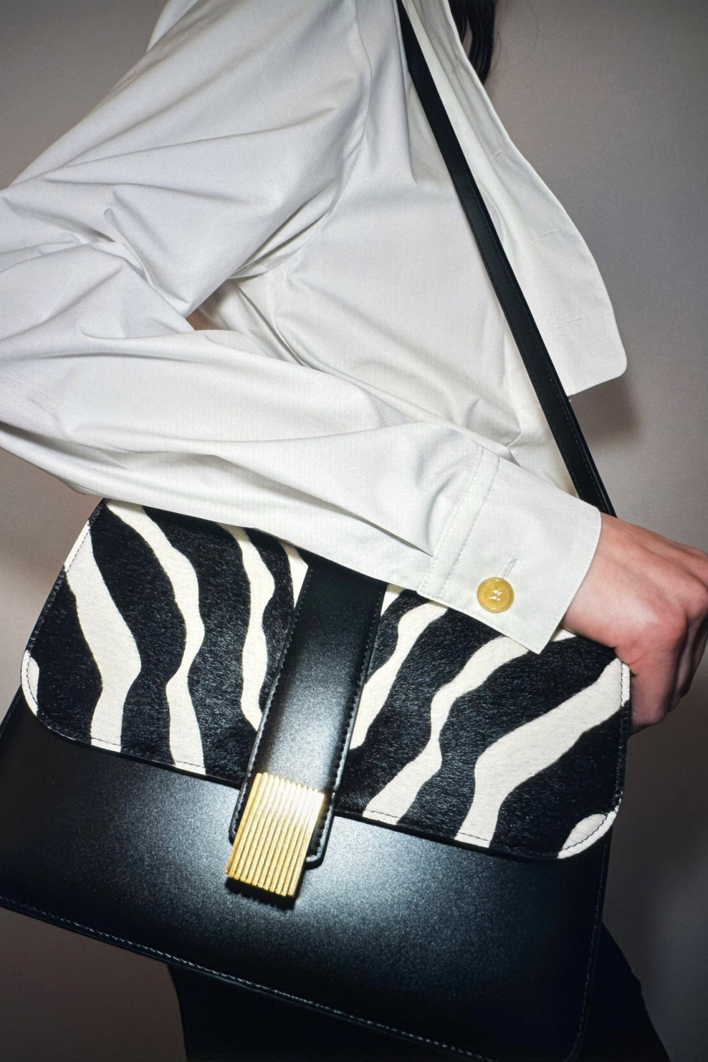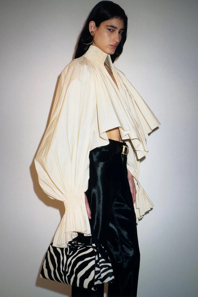 Впервые за долгое время коллекция кажется почти ироничной. Лоферы на каблуке с крошечными кармашками на носах, украшения в виде миниатюрных сумок Lotus, двухцветные сапоги — наполовину с принтом зебры, наполовину из черной замши — и пальто с намеком на талию, но без давления на нее. Все это неожиданно органично уживается с узнаваемой сдержанностью Khaite. Это вещи, которые хочется носить не ради модного заявления — лишь ради собственного удовольствия.