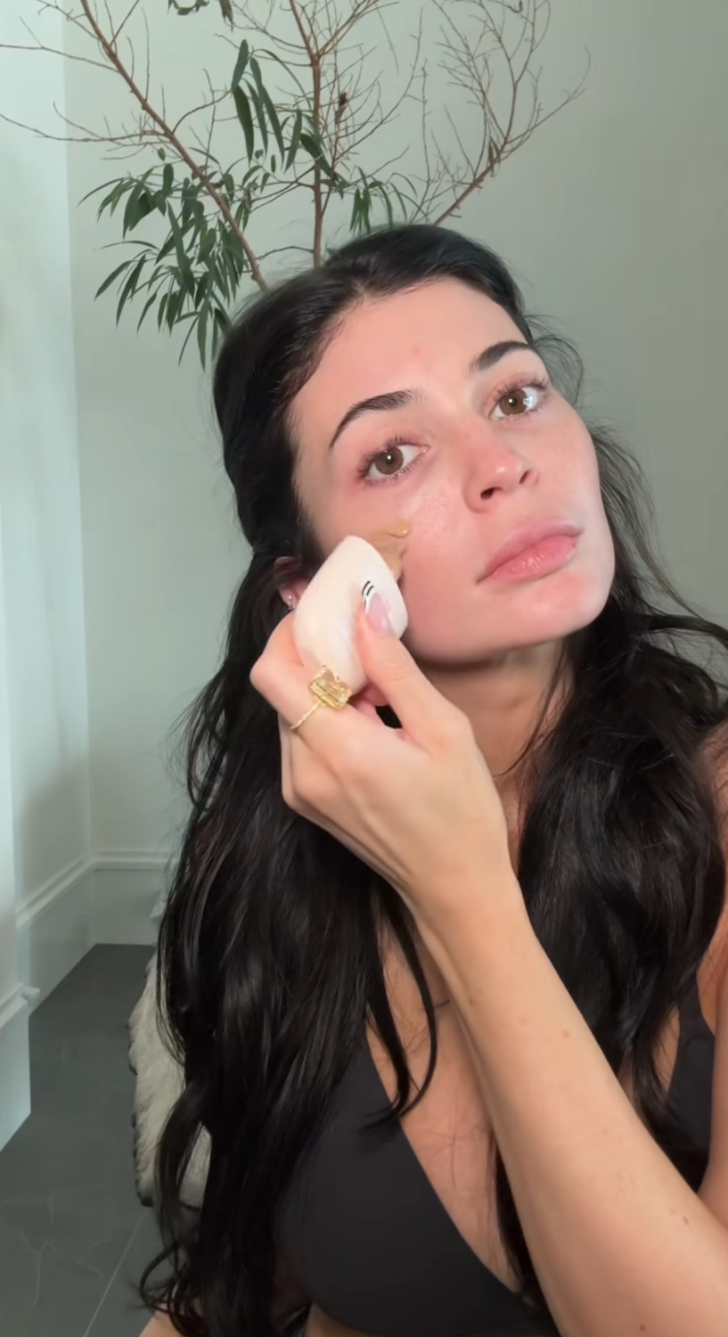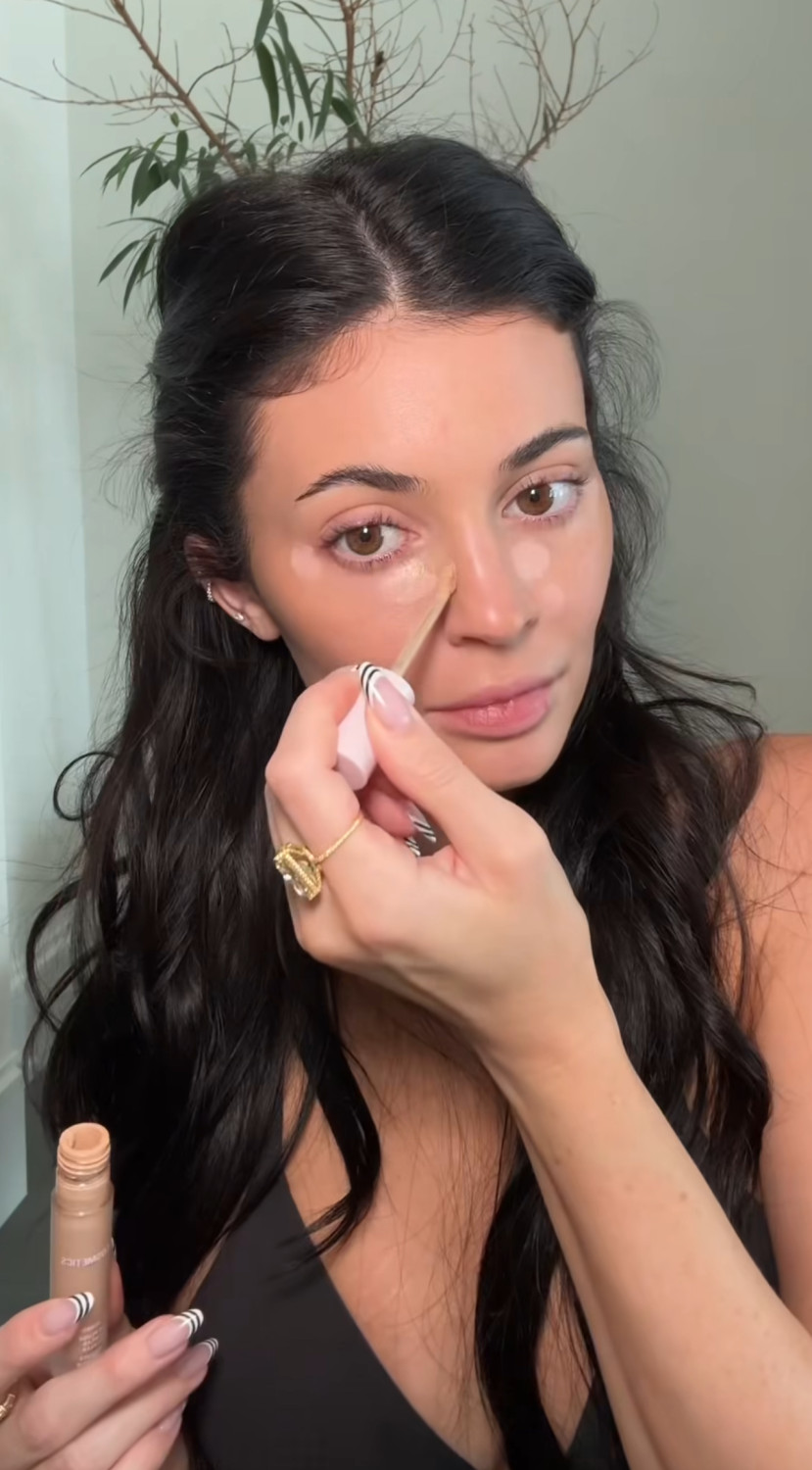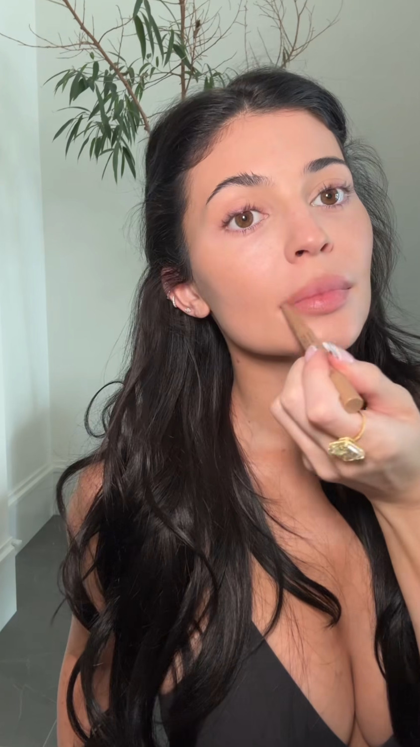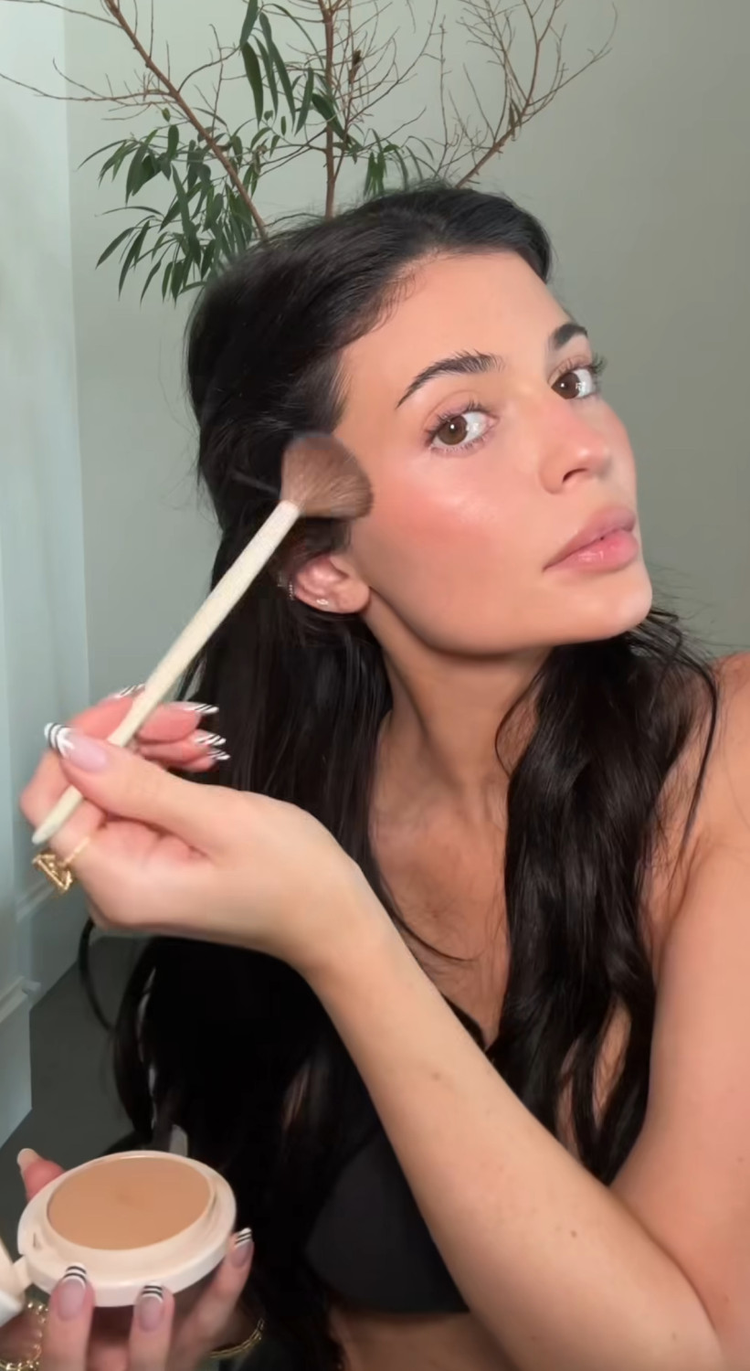Кайли алдымен теріге арналған тональды крем мен консилер жағады, содан кейін жеңіл контуринг жасайды. Бұл тәсіл ерінге де қатысты: ол еріннің пішінін қарындашпен айқындап, көлеңке түсіру арқылы визуалды түрде көлем қосады. Одан кейін румяна жағып, оны мұрнына да аздап тигізеді — бұл бетке күнге күйген әсер береді. Көпшілігіміз демалыстан кейін сондай тері түсіне ұмтыламыз.