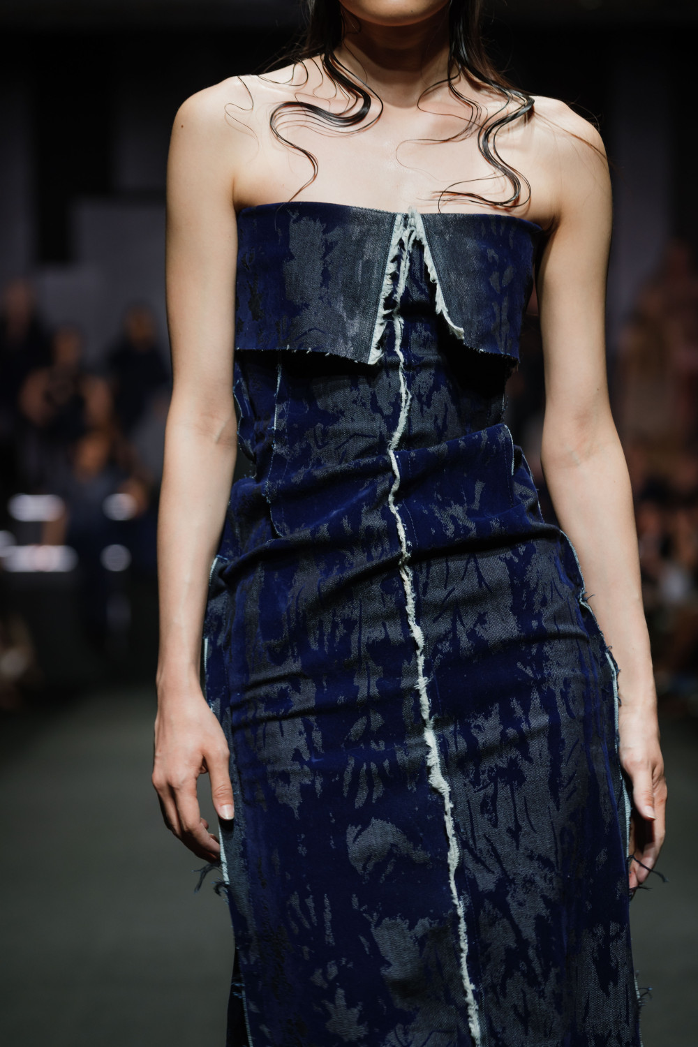 Деним, который стал главным элементом коллекции, — не просто базовый материал. Он как метафора. Потертости, следы вываривания, принты, имитирующие износ — все это не просто визуальные эффекты. Это способ показать, что время оставляет следы не только на ткани, но и на нас.