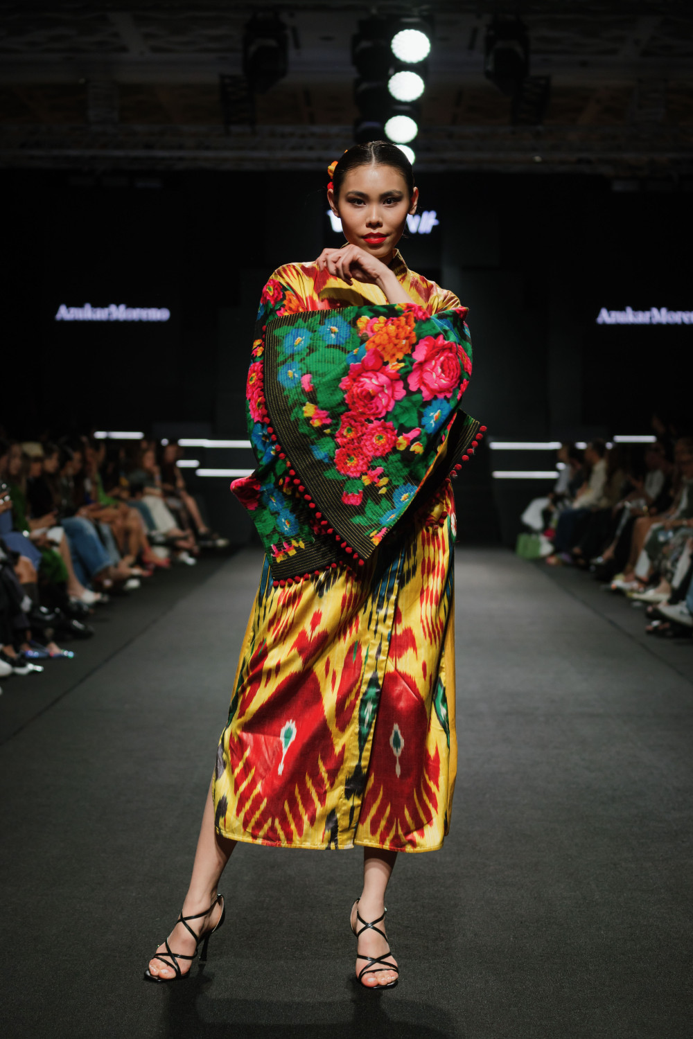 С самого первого выхода на подиум стало понятно: Azukar Moreno приглашает не просто смотреть — чувствовать. Это не показ, а путь. Не коллекция, а хореография культур. Тонкий, как шелк. Направленный, как мысль. Мост — между Востоком и Западом, между древним ремеслом Маргилана и скоростью современности.