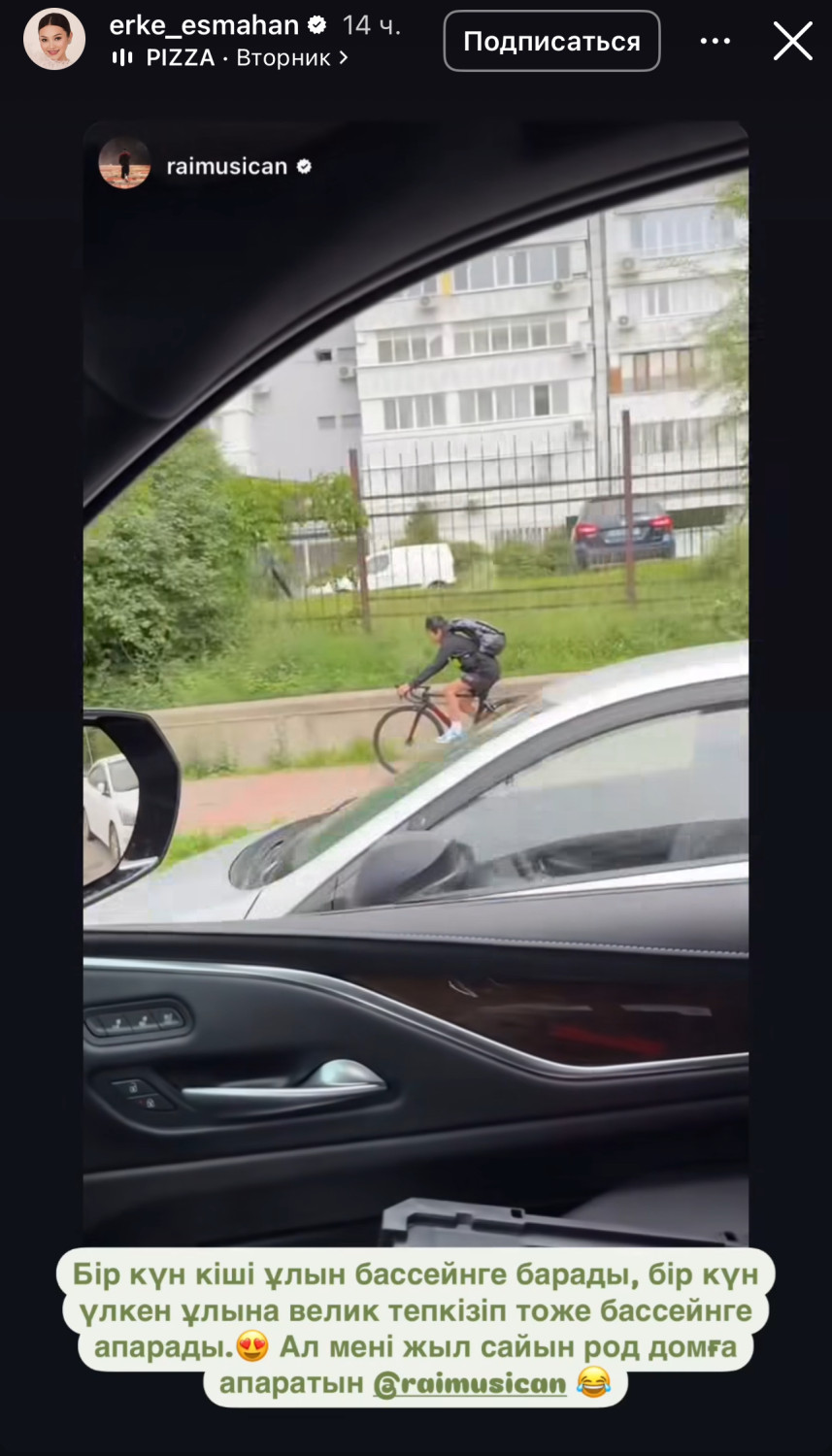 Белгілі әнші Ерке Есмахан әлеуметтік желіде жолдасының жанұяға деген ықыласын, әкелік қамқорлығын ерекше ықыласпен жеткізді.
