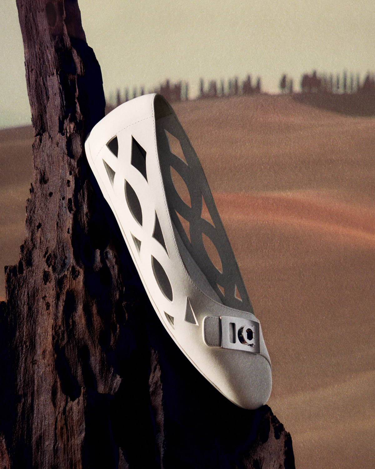 Коллекция Back to Earth продолжает эту традицию, сочетая архивные находки с современными стандартами устойчивости. Ее главный акцент — это новая версия сумки Hug, переосмысленная 60 молодыми сотрудниками бренда в ходе первого хакатона Circularity. Основание аксессуара выполнено из растительно вымоченной кожи из Тосканы, прошедшей стандарты LWG Gold, а внутри — съемный шелковый чехол, который можно переворачивать под настроение. В коллекции также можно найти балетки с подошвой из натурального каучука, что исключает использование нефтехимических материалов.