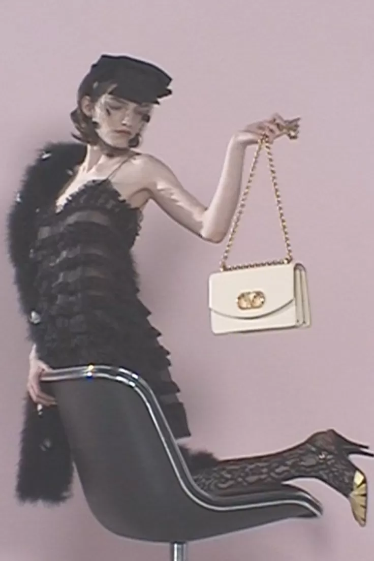 Есть вещи, которые хочется унести с собой в постель. Хорошую книгу. Бывшего (если совсем потерять голову). Или… сумку. Ту самую — новую из коллекции Valentino. Она выглядит так, будто знает все твои секреты, но не осуждает ни за один. Созданная Алессандро Микеле, она пришла к нам в знаковой обертке его эстетики: немного ретро-пленки, чуть-чуть театра и целиком — чувственность, от которой мурашки.