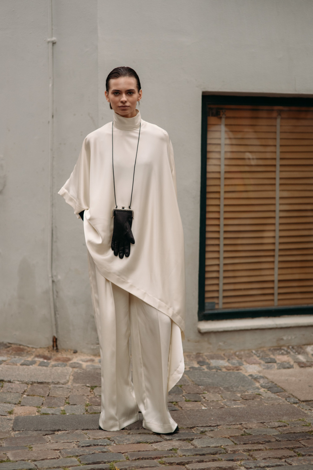 Минимализм — слово, которое традиционно ассоциируется со странами Скандинавии. Однако копенгагенская Неделя моды в очередной раз разрушила этот стереотип. Гости события доказали, что владеют искусством сочетать несочетаемое и относятся к моде с долей иронии. Пижамный костюм, дополненный боа из перьев, стал символом постпандемийного максимализма и задал тон стритстайл-хронике, которую подхватила компания в капсуле из главных тенденций сезона. Анорак, брюки Алладина, кружевная бохо-накидка и даже колье, напоминающее перчатку-кошелек, — каждая деталь обрела авторское прочтение, выходя за рамки модных клише.