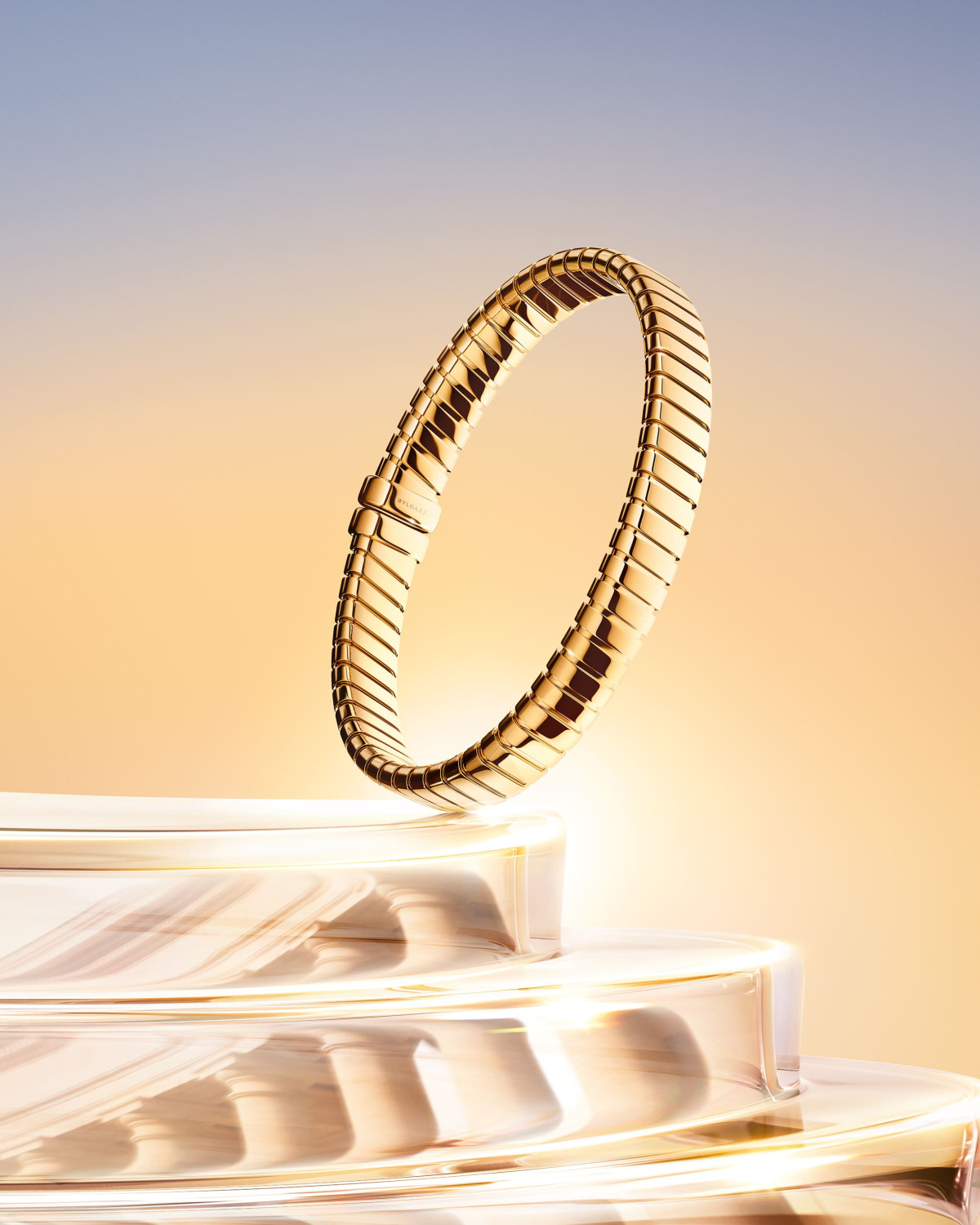 - Tubogas — одна из самых узнаваемых коллекций Bvlgari, ставшей символом ювелирной инженерии. Ее пружинистая форма без единого шва вдохновлена металлическими трубками XX века.