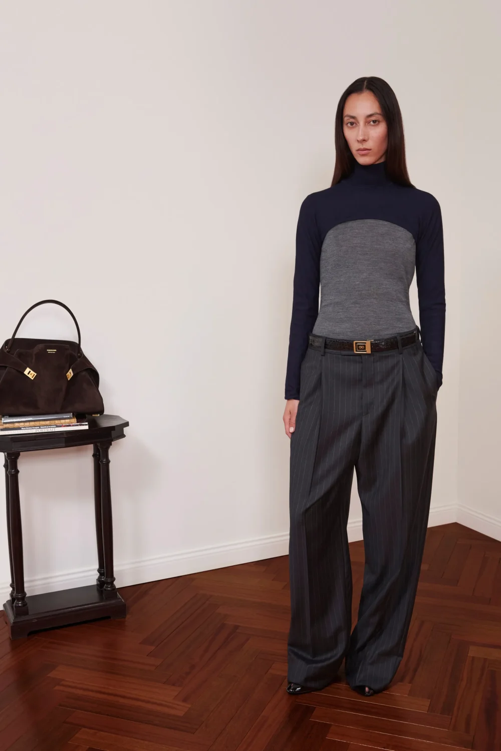 Стоит отметить, если приглядеться, в каждой вещи прячется особый штрих. Едва уловимый, почти интимный. Застежка Gancino, спрятанная в складках денима и трикотажа, — как маленький секрет, понятный только «своим».