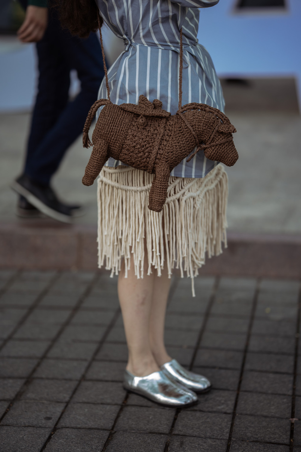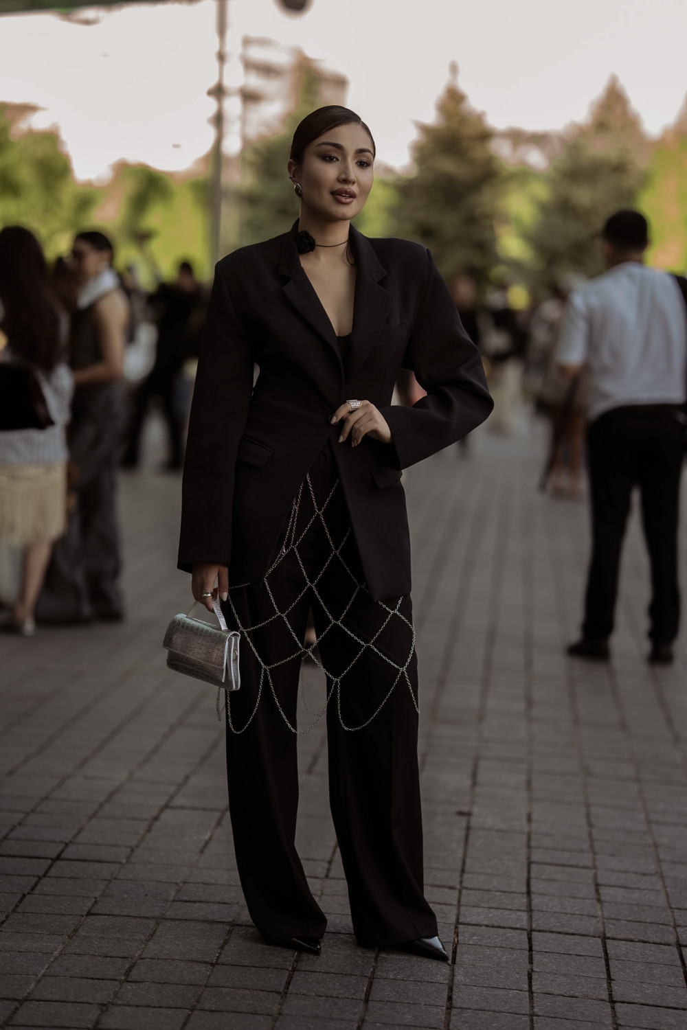 Одна из гостьей вдохновилась коллекцией Saint Laurent AW ‘24 и перевела ее на улицы города — кожаная юбка, смоляной браслет и тюрбан, как будто только что вынырнувшие из туманного отражения в будуарном зеркале. А некоторые выбрали аксессуары из новой коллекции Mariko — финалистки прошлого NDA, чей голос, к слову, вновь пронзил подиум в этом сезоне. От костюмов с необычными деталями до сумки в форме лошади — собрали самые захватывающие образы, которые без лишних слов рассказали о настроении сезона.