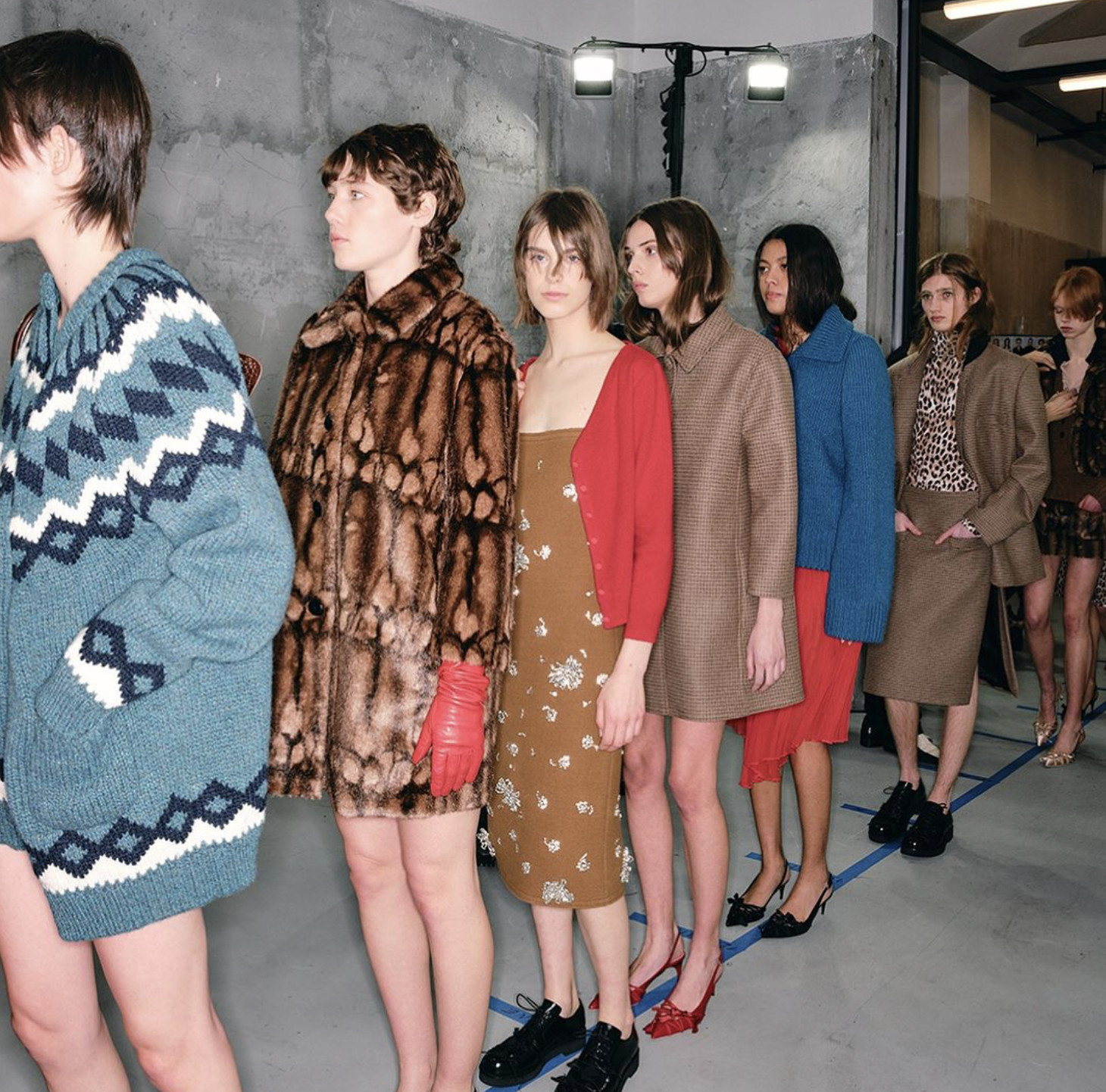 Оттенки тины, лесной зелени и гранита — все представленные образы были выполнены в приглушенной цветовой палитре, идеальной подходящей для осени. Говоря о принте, то горошек розового и зеленого цвета стал отсылкой к перформансу художника и дизайнера Ли Боуэри. Особенно нашей редакции понравились сапоги для верховой езды, которые, казалось, сопровождали почти каждый ансамбль.
