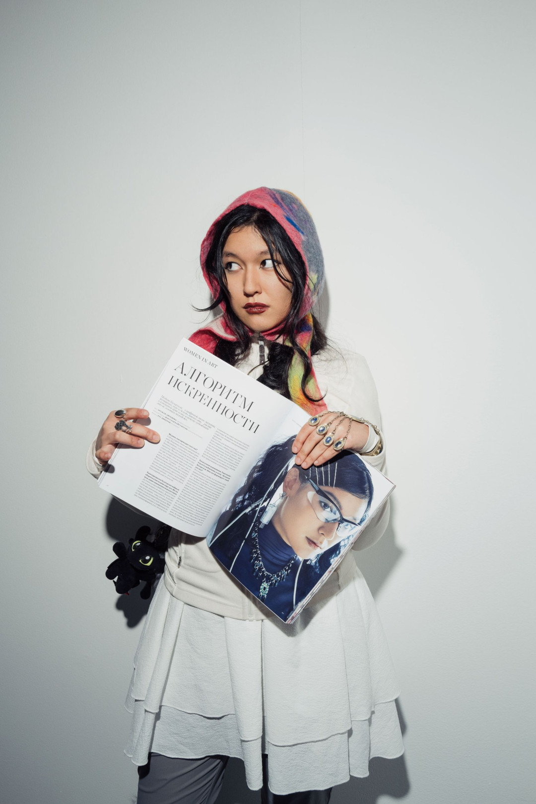 Главный редактор Лариса Азанова представила номер лично и шаг за шагом провела гостей через историю десяти специальных обложек, на которых раскрылись работы значимых авторок: Алмагуль Менлибаевой, Яеи Кусамы, Алисии Кваде, Айши Галимбаевой, Татьяны Глебовой, Диляры Клиповой совместно с NOOLODIN, Саодат Исмаиловой, Сауле Сулейменовой, Меруерт Кунаковой и Марии Лизогуб. И в этом созвездии взглядов на искусство особенно тонко зазвучал еще один штрих — авторский паттерн Мики Барни, единственной казахстанской креаторки, приглашенной в лабораторию Curious Minds под кураторством Стефано Селлети.