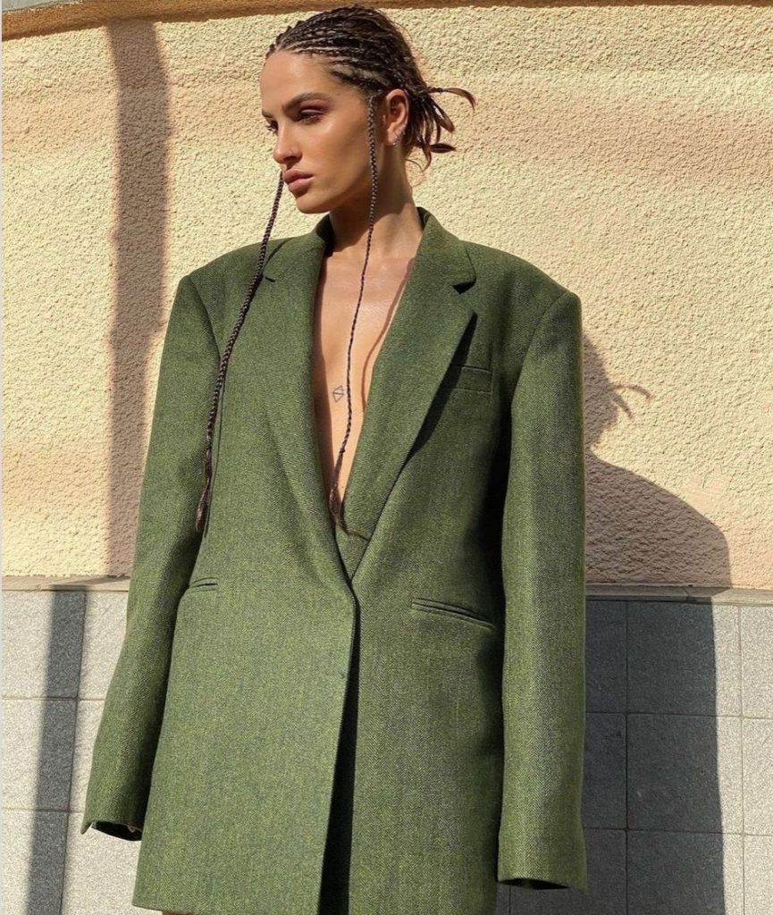 Когда чувствуете, что устали от оверсайза, то не стоит отчаиваться. В коллекциях брендов стало больше приталенных жакетов и мы, сами того не ведая, по ним очень соскучились. Строгий, фактурный крой подчеркивающий талию, выглядит утонченно, а маскулинности и серьезности образу добавляют объемные, геометричные плечи. Идеальный вариант и для деловой встречи и для вечеринки с друзьями.
