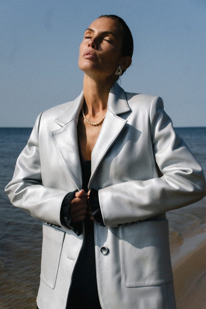 Кожаный пиджак уже по праву может считаться вневременной классикой и одной из главных инвестиций в осенне-зимней гардероб. Помимо привычного нам черного, особенно притягательно смотрятся такие жакеты в необычных цветах, например, в светло-сером, серебристом и золотистом. Использование столь редких оттенков в кожаных изделиях сразу добавляет образу уникальности, ведь найти такой материал очень сложно. С кожаным жакетом можно составить как образ в стиле девяностых дополнив широкими джинсами и простой футболкой, так и выбрав более классические сочетания — с плиссированными юбками и брюками-трубами.