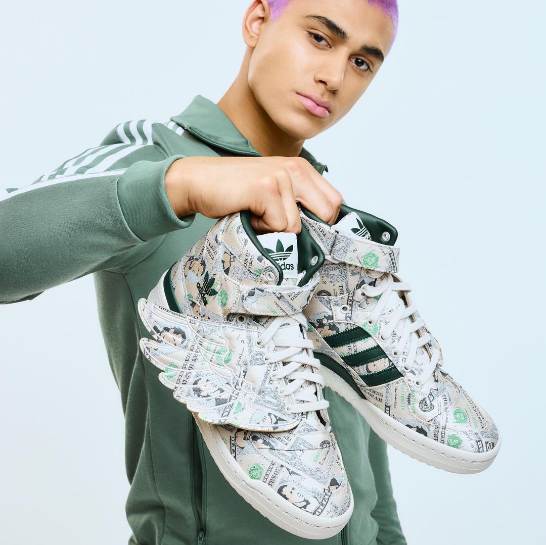 Adidas сделали очередную коллаборацию с дизайнером Джереми Скоттом. Результатом сотрудничества стал перевыпуск крылатых кроссовок JS Forum Wings 1.0. в новом исполнении. Данная модель кроссовок впервые была выпущена 18 лет назад, в 2003 году в ограниченном количестве. Джереми Скотт решил поместить на обувь принт с долларовыми купюрами. На купюрах вместо президентов изображено лицо дизайнера. Лимитированная коллекция выпущена в количестве 1200 пар и будет доступна к покупке с 23 по 29 августа в приложении Adidas Confirmed.