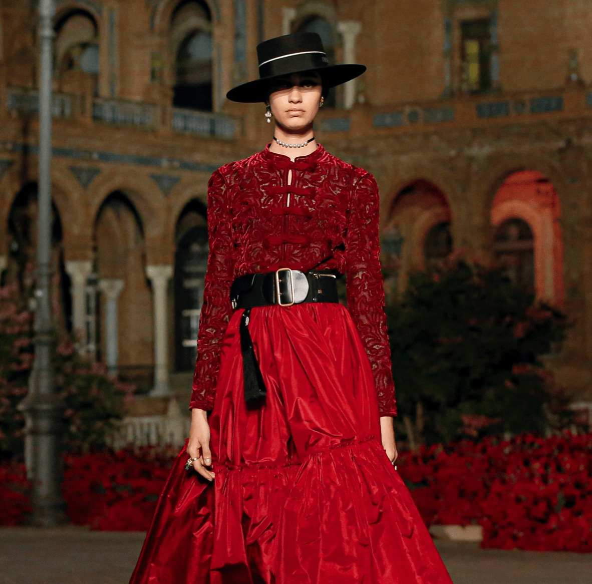 Танцы и музыка стали неотъемлемой частью шоу Dior, которое прошло в Севилье. На площади Plaza de España танцовщицы в красных платьях синхронно двигались под звуки оркестра, исполнявшего традиционную испанскую музыку. Креативный директор бренда - Мария Грация Кьюри - умеет выбирать локации. Площадь является прекрасной иллюстрацией разнообразия и богатства культур, повлиявших на Испанию.