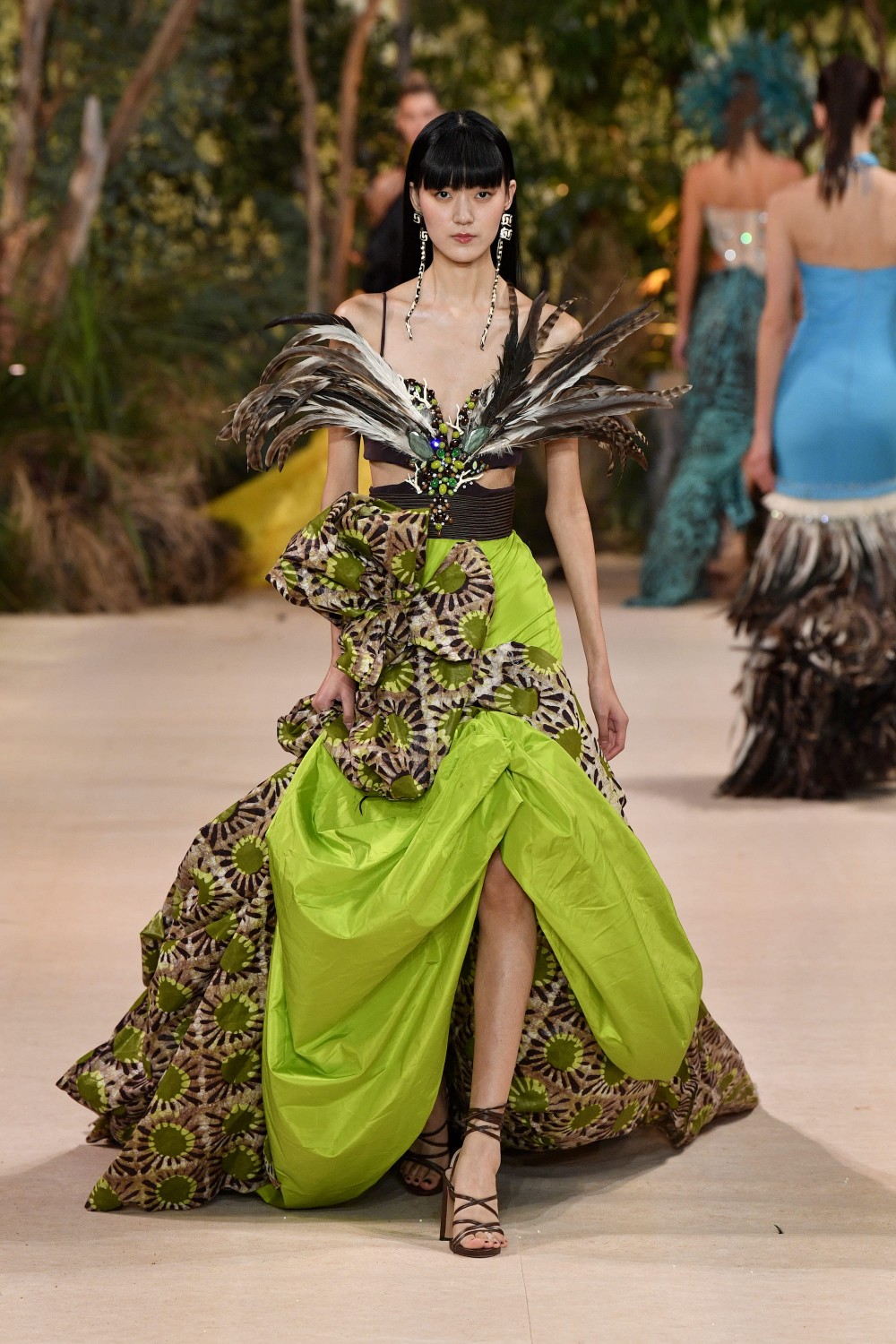 Новая коллекция под названием «Одиссея» вдохновлена путешествиями в неожиданное.Состоит она из коктейльных платьев, жакетов, мини-нарядов и кафтанов, искусно вышитых вручную в традициях старейшего греческого дома высокой моды. Дизайнер уверяет, что дело не в пункте назначения — всегда важна отправная точка. Связь между культурами, мифологиями и всеми формами творчества — лишь это имеет значение. Цветовая палитра нарядов по-настоящему насыщенная: от ярко-оранжевого, зеленого и желтого до землисто-коричневого, кораллового, мятного, алого и темно-красного. Тафта ручной росписи и анималистические принты — вся суть от-кутюр была представлена в коллекции. Стоит отметить и то, что образы были дополнены украшениями ручной работы.