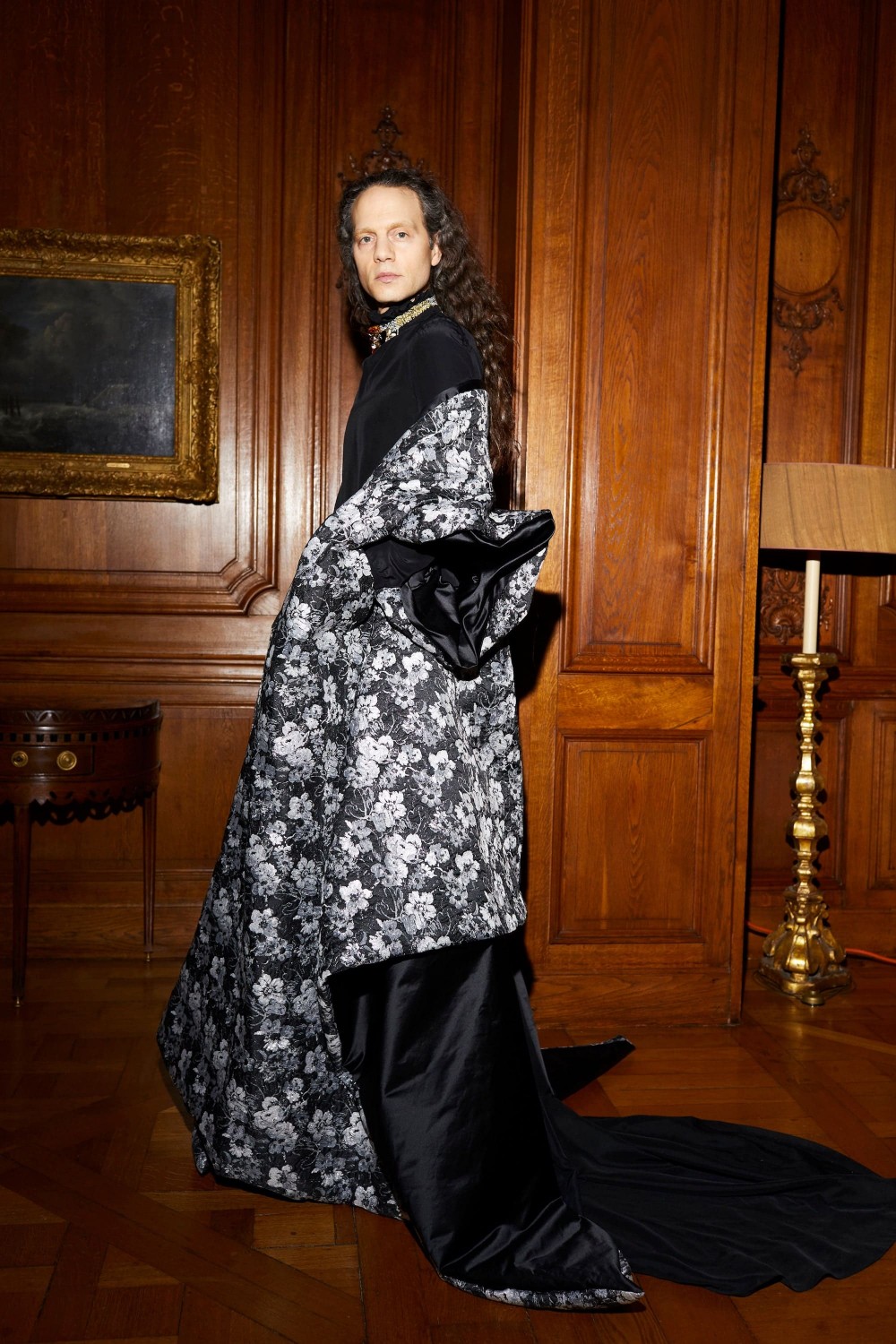 Голландский дизайнер Рональд ван дер Кемп не перестает удивлять множеством техник и переработкой материалов. Он не только создал первый в мире устойчивый кутюрный бренд, но и с каждой коллекцией все больше поражает тем, как превращает текстильный мусор в интересные образы. В этом сезоне Рональд разработал устойчивую ткань, что сможет послужить для масштабного производства. Как и Georges Hobeika, ван дер Кемп решил наряду с моделями выпустить на подиум и знаменитых друзей бренда.