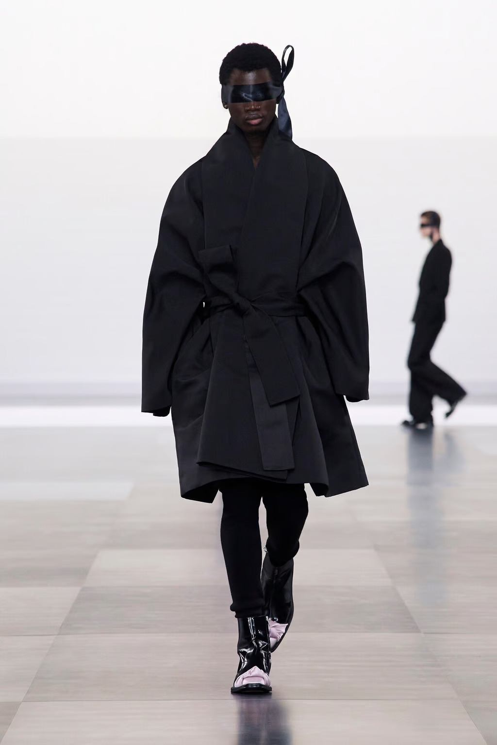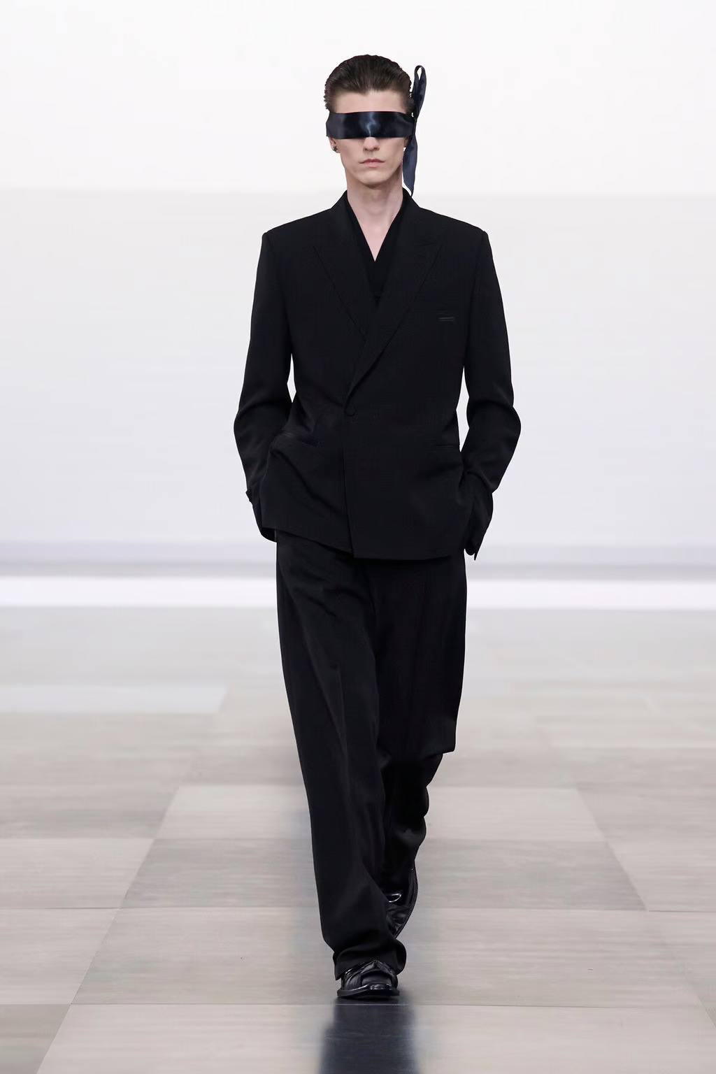 Дизайнер оставил позади многослойные конструкции и сложные формы прошлого сезона, выбрав более сдержанный, но далеко не примитивный стиль. Шоу открылось черным «монашеским» одеянием, стилизованным под длинную юбку, что сразу установило главный мотив коллекции: роскошь через тонкие, почти невидимые детали.