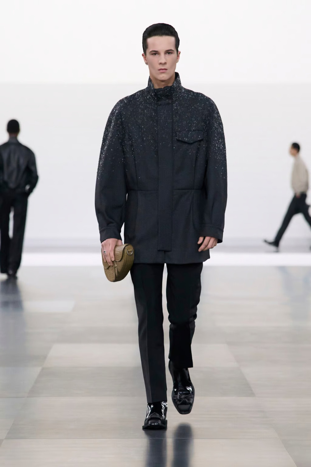 Не менее важным стало возвращение к культовому силуэту H-line, который Кристиан Диор ввел в 1950-е как ответ на преувеличенные пропорции New Look. Эти чистые линии и минимализм, адаптированные для мужского гардероба, стали основой коллекции, предлагая стильные и долгосрочные инвестиции, которые остаются актуальными и становятся более востребованными с каждым годом.