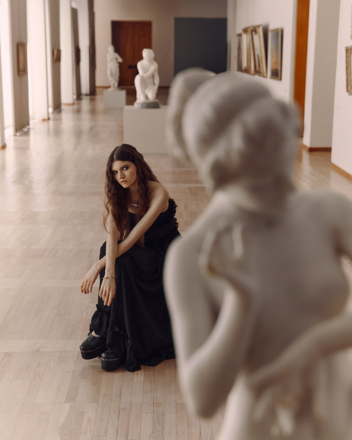 Платье и обувь: Ainur Turisbek; Колье, браслет и серьги: MURAA Jewelry.