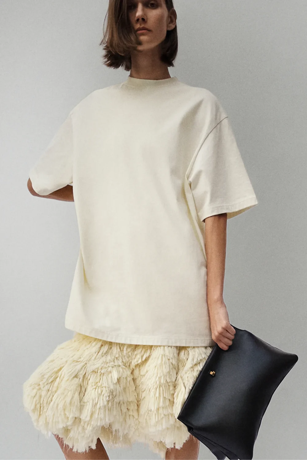 Фиби Файло представила вторую коллекцию для своего одноименного бренда, лаконично названную буквой «B». Она сохраняет ту же непревзойденную элегантность, которая определила первый дроп дизайнера. От черной кожаной куртки с широкими плечами до пальто-халата и широких брюк из стриженого меха — в нее вошли изделия, которые выглядят одновременно сдержанно и безмятежно, позволяя каждой детали говорить за себя.