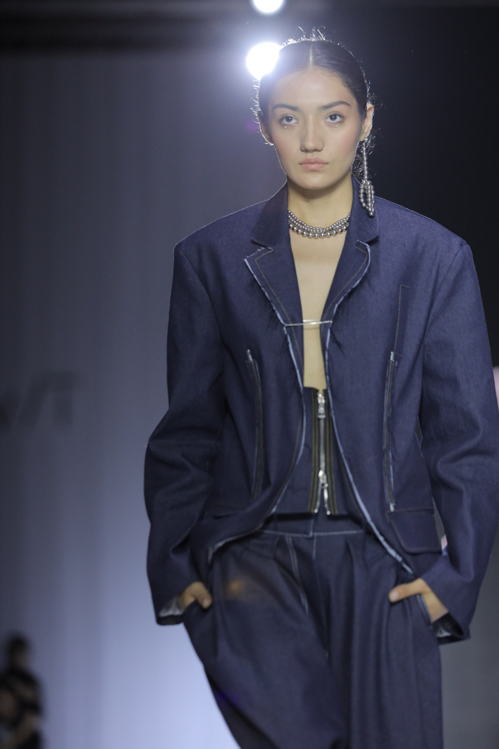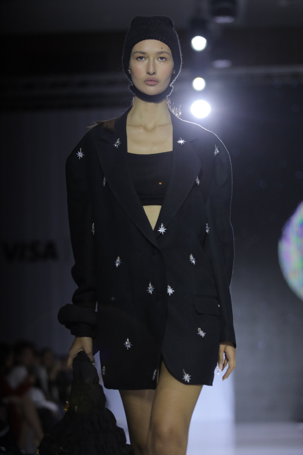 Для II сезона VFW Tashkent дизайнер решил не ограничиваться настоящим и рамками нашей планеты. Он отправился в исследование космоса и создал изделия с нотками футуризма. Асимметричные юбки и тренчкоты, ремни и перчатки — все они были выполнены в трендовом серебристом металлике. Одни модели напоминала звездных войнов в трикотажных кейпах, а другие — таинственных странников в total-black аутфитах с цветочными аппликациями.