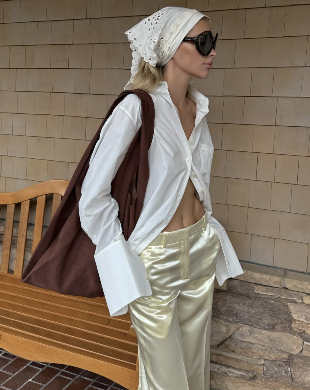 Что объединяет Сабрину Карпентер, Эльзу Хоск, Алексу Чанг, Тимоти Шаламе и показ Gucci FW ‘25? Конечно же, платок на голове — тот самый аксессуар, который соединяет дух 1950-х и 1990-х и способен мгновенно превратить обычный осенний образ в стильный. Его можно носить по-разному — и каждый способ задает свой характер. Хлопковые модели держатся лучше и идеально подходят для повседневности, а шелковые добавляют роскоши. Платок можно завязать «под подбородок», как Алекса Чанг, или свободно обернуть вокруг головы слегка ниже макушки, как Эльза Хоск.