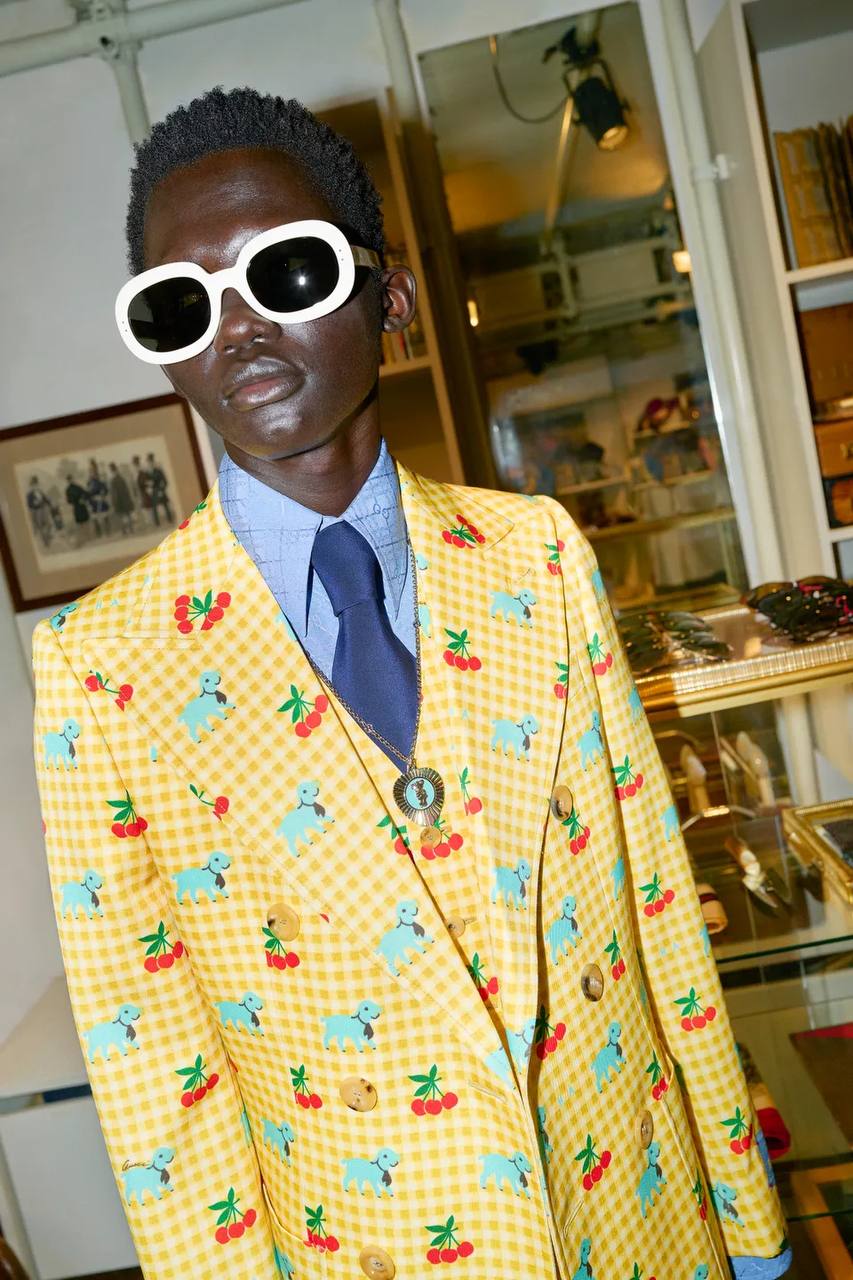 У Микеле и Стайлса общее пристрастие к британскому сарториальному силуэту 70-х годов. И любой преданный поклонник Gucci сразу же узнает одежду в стиле этого десятилетия, сшитую из богатого бархата и клетки виши.