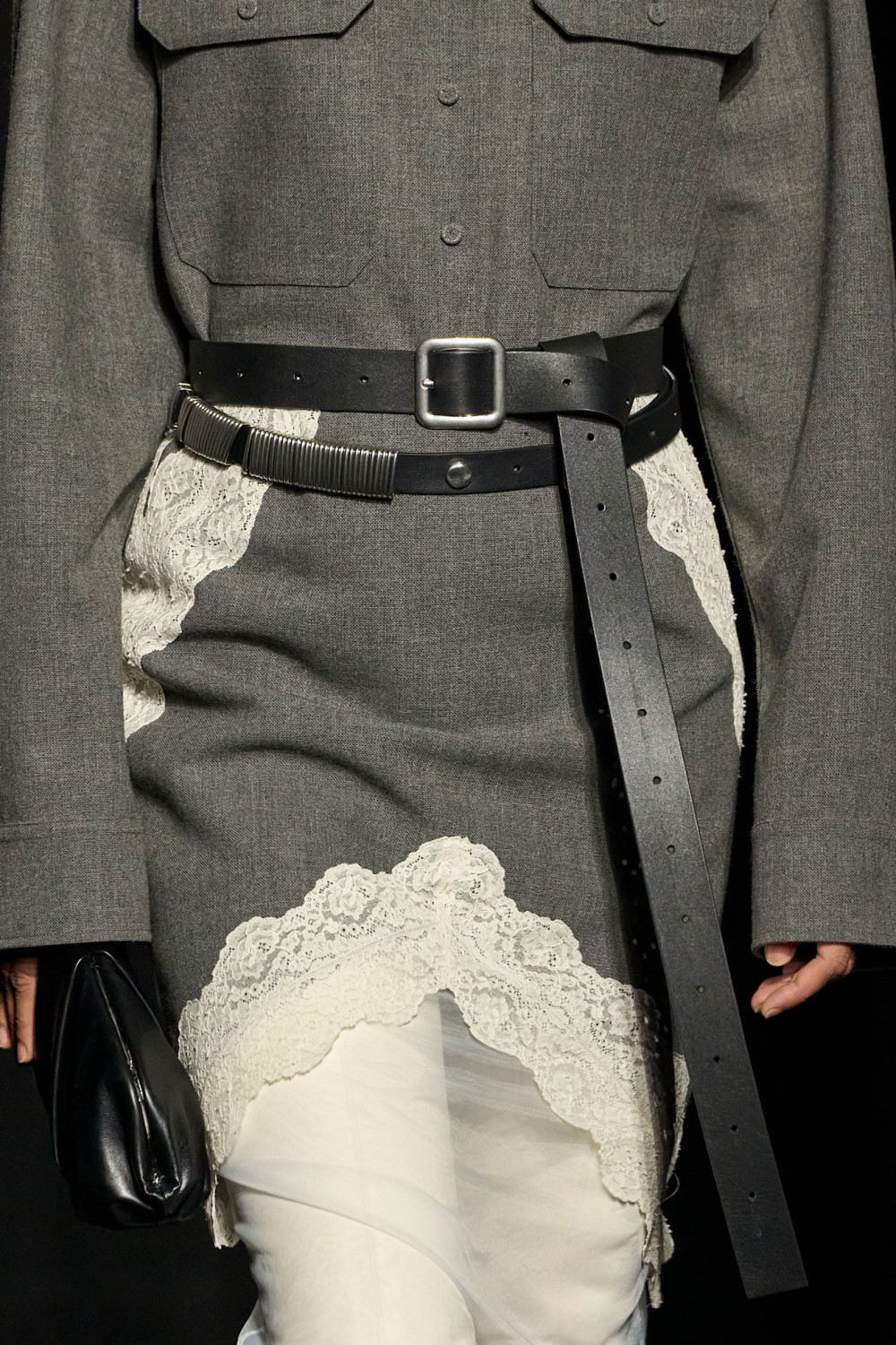 Главная идея коллекции? Тело и то, как мы его предъявляем миру. Прозрачные трикотажи, вырезы на бедрах вместо вытачек, круглые срезы на платьях и топах, обнажающие бюстгальтер, — Беллотти предложил интеллектуальную сексуальность без намека на вульгарность.