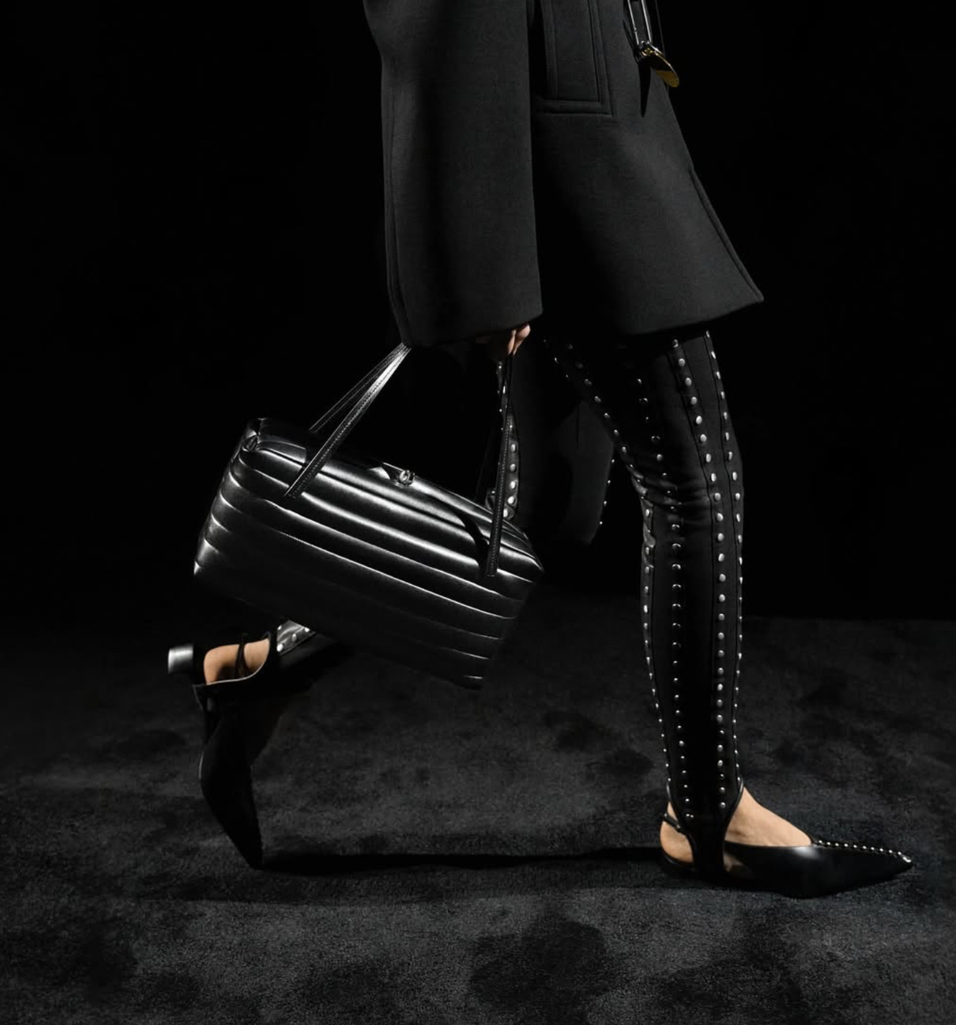 А дополнил ее дизайнер лаконичной обувью на плоском ходу, лишенной декора. Его любовь к обуви, проявившаяся еще в Bally, здесь стала функциональной деталью. Беллотти превратил ее в невидимого союзника — она сопровождала образы, но не перетягивала внимание.