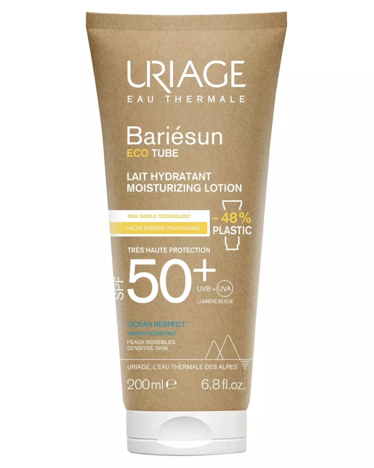 Увлажняющее молочко для лица и тела SPF 50+ предназначено для чувствительной кожи. Оно обеспечивает очень высокую защиту от УФ-лучей и интенсивно увлажняет, предотвращая обезвоживание, вызванное солнцем. Молочко имеет легкую нежирную текстуру, деликатный аромат и подходит для использования как на лице, так и на теле. Оно не содержит парабенов, спирта, а также гипоаллергенное, некомедогенное и водостойкое. В составе присутствуют термальная вода Uriage, витамины Е и С, акваспонжины и УФ-фильтры.